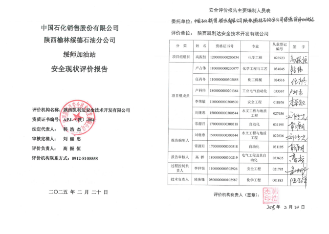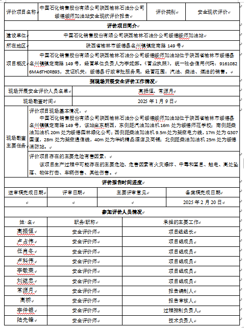 KLDAP[2025]-3.30中国石化销售股份有限公司陕西榆林石油分公司绥师加油站安全现状评价