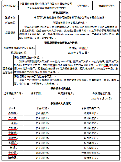 KLDAP[2025]-3.31中国石化销售股份有限公司陕西榆林石油分公司府谷百盛加油站安全现状评价