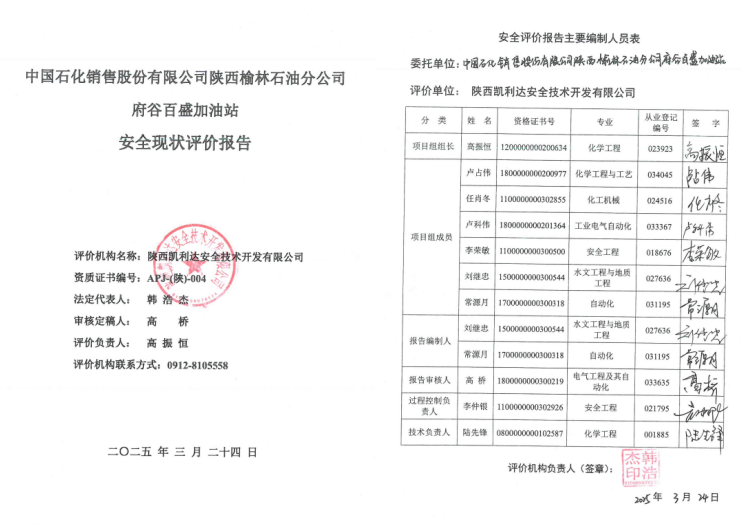 KLDAP[2025]-3.32中国石化销售股份有限公司陕西榆林石油分公司李家畔加油站安全现状评价