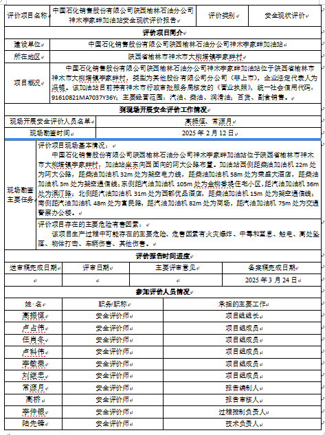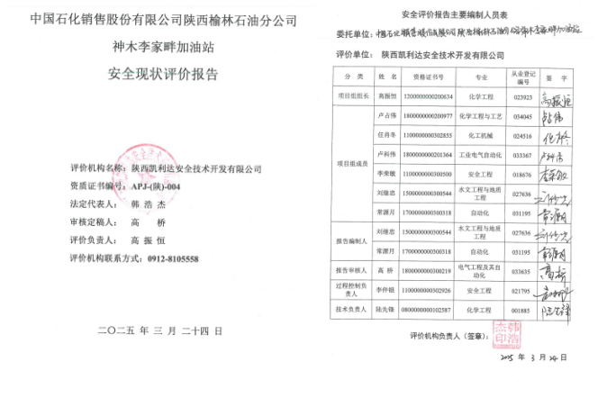 KLDAP[2025]-3.32中国石化销售股份有限公司陕西榆林石油分公司李家畔加油站安全现状评价