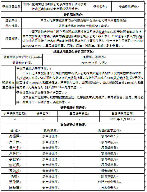 KLDAP[2025]-3.35中国石化销售股份有限公司陕西榆林石油分公司神木兴鑫加油站安全现状评价