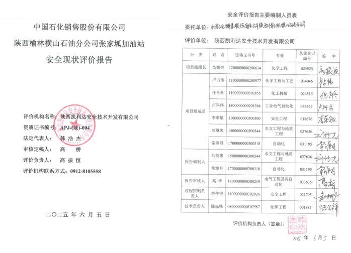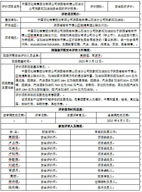 KLDAP[2025]-3.36中国石化销售股份有限公司陕西榆林石油分公司张家坬加油站安全现状评价