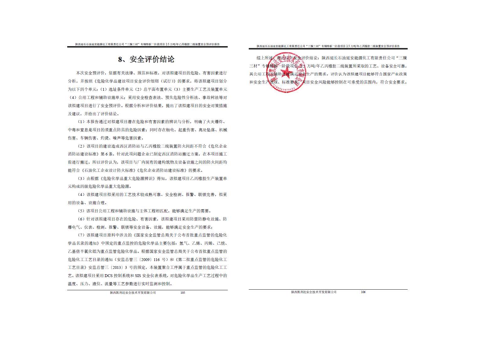 陕西延长石油延安能源化工有限责任公司“三羰三材”专精特新一阶段项目2.5万吨/年乙丙橡胶二线装置安全预评价
