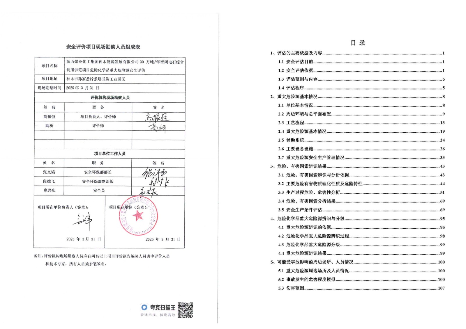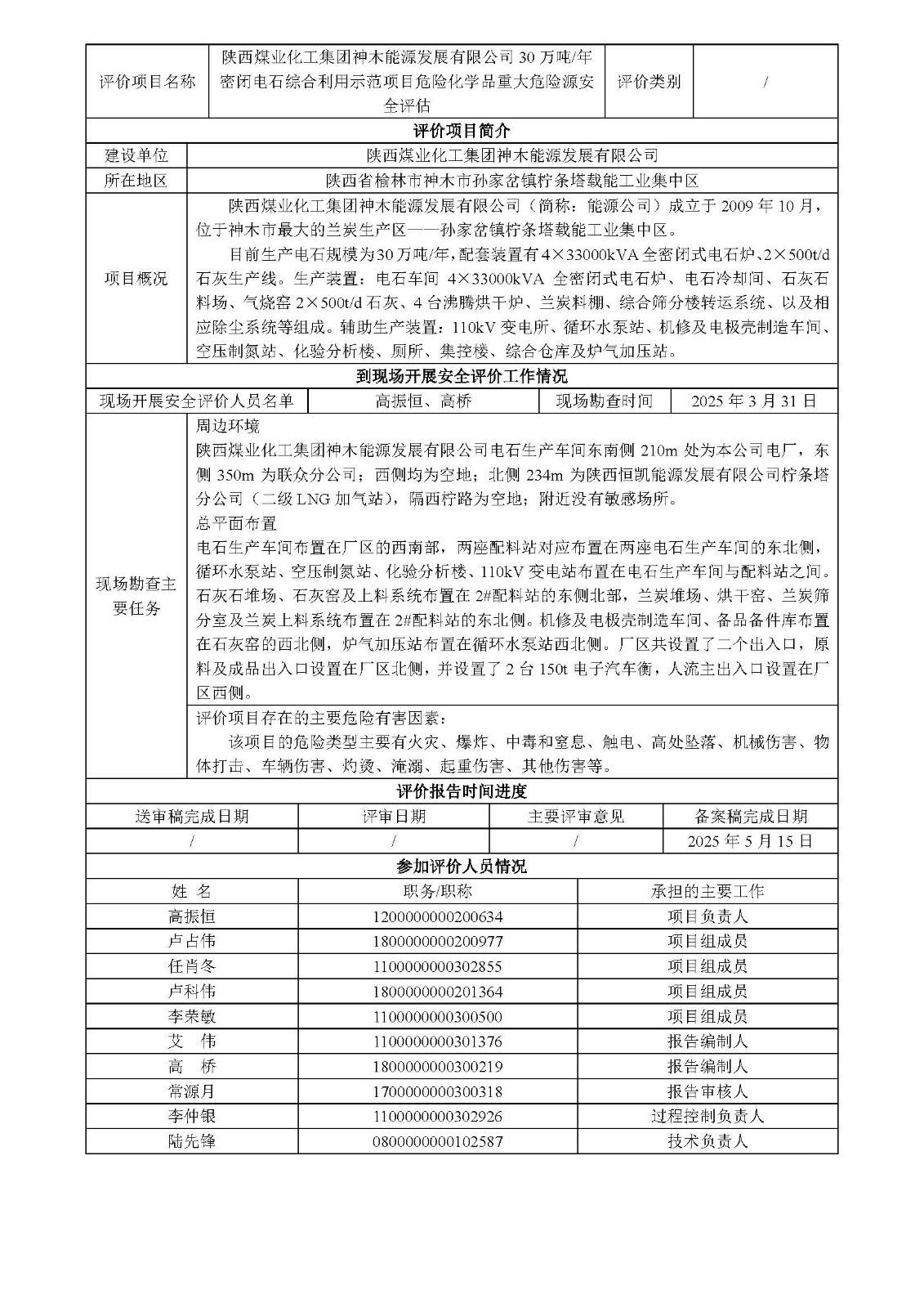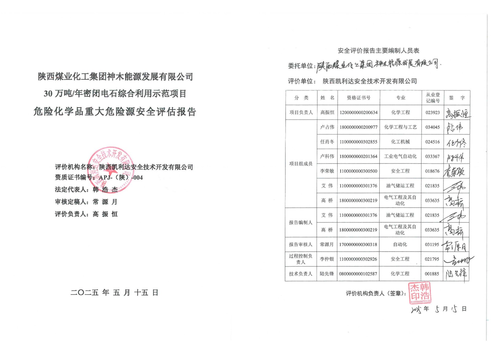 KLDAP-[2025]-2.10陕西煤业化工集团神木能源发展有限公司30万吨年密闭电石综合利用示范项目危险化学品重大危险源安全评估报告