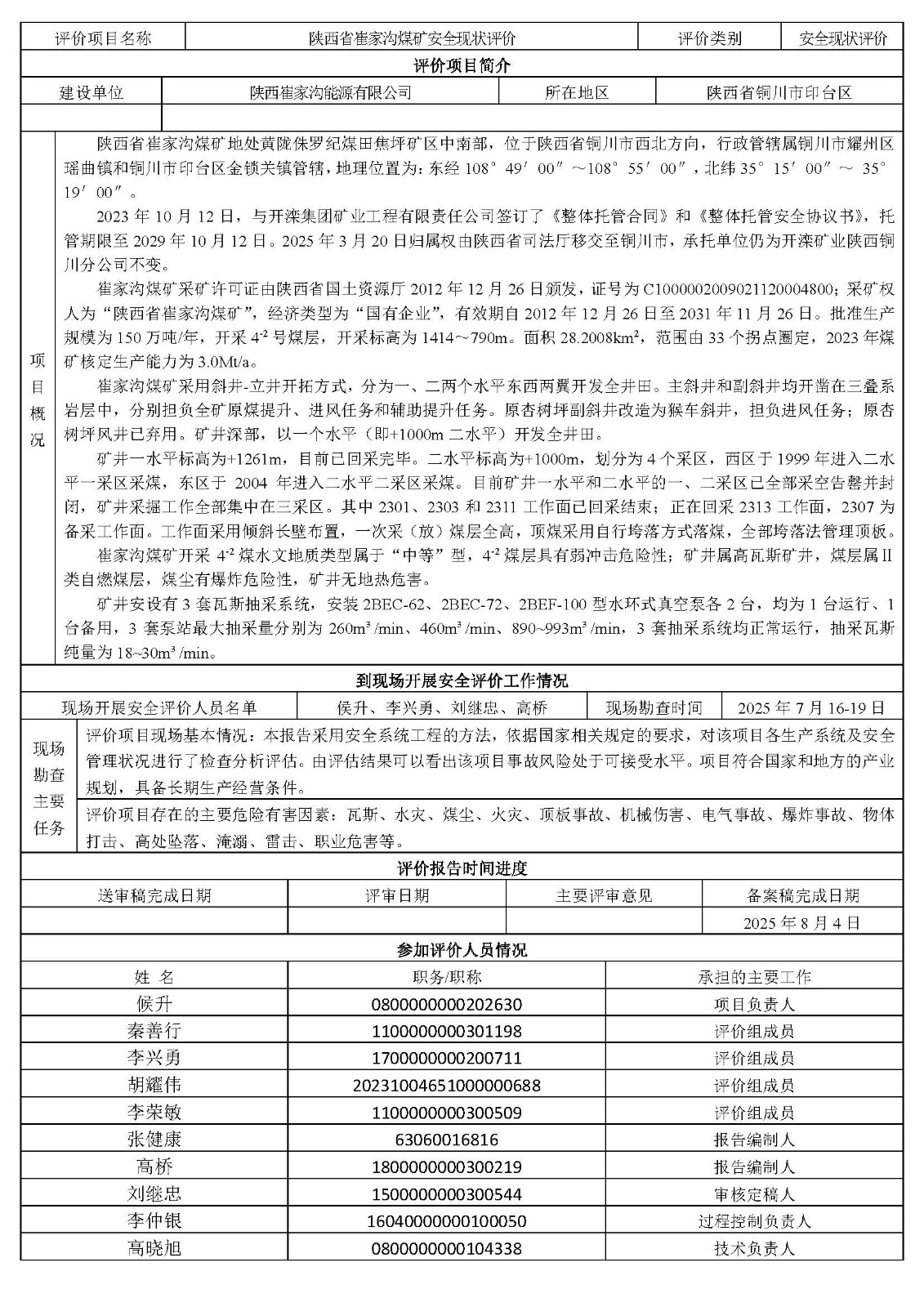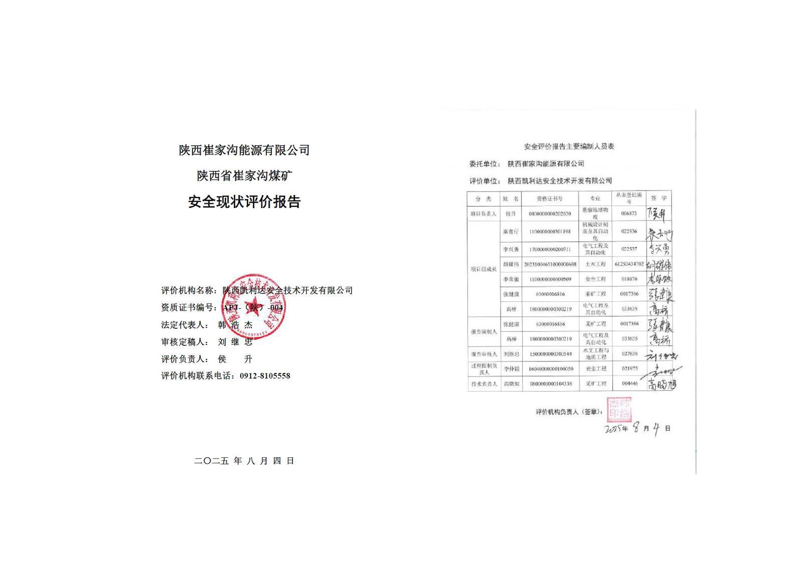 陕西崔家沟能源有限公司陕西省崔家沟煤矿安全现状评价