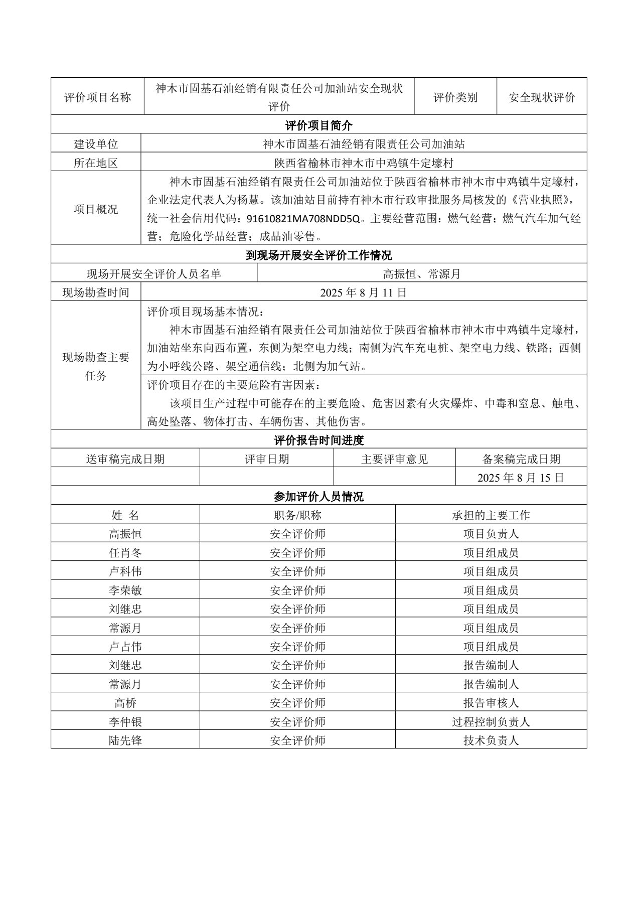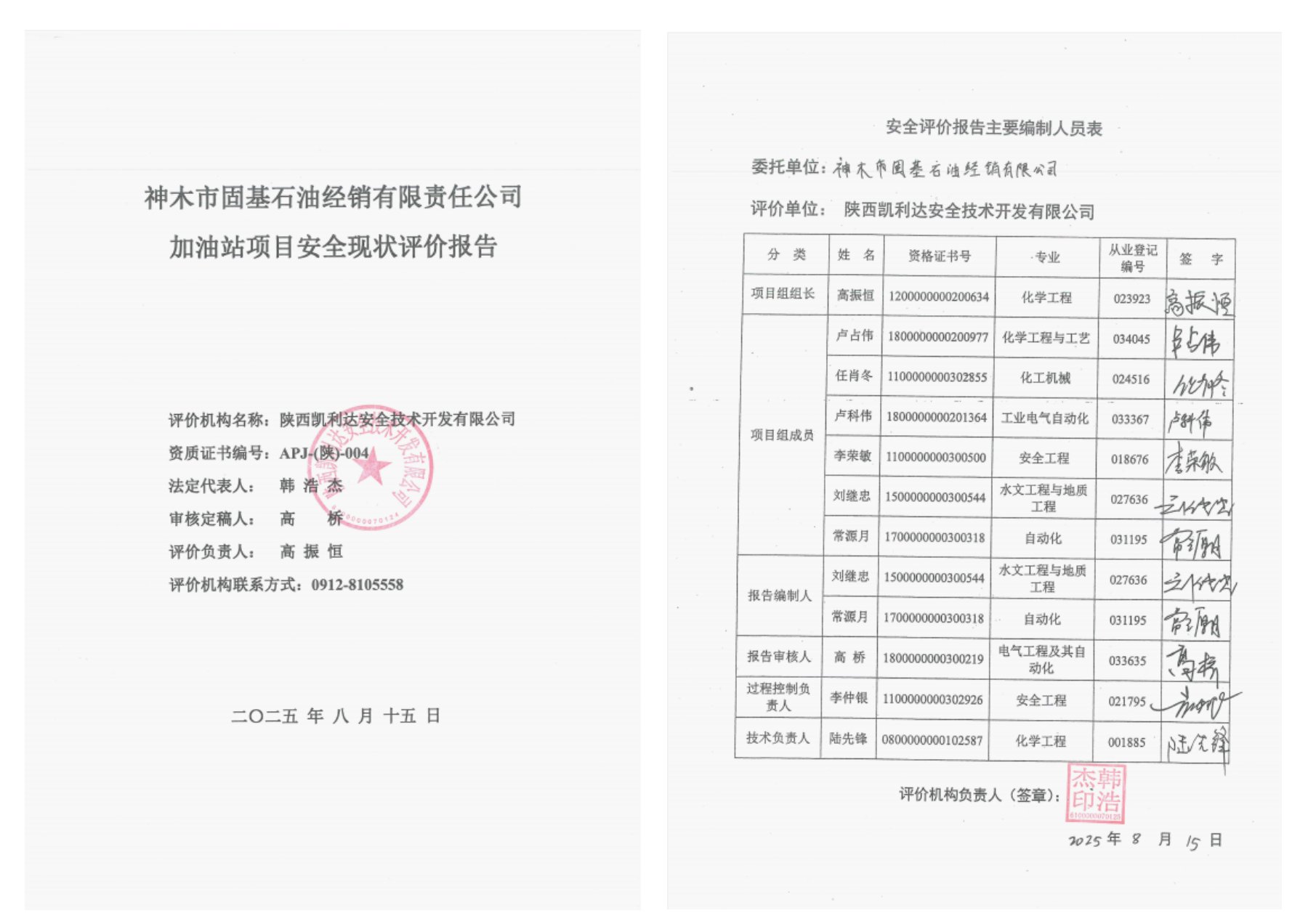 KLDAP[2025]-2.23神木市固基石油经销有限责任公司加油站项目安全现状评价报告