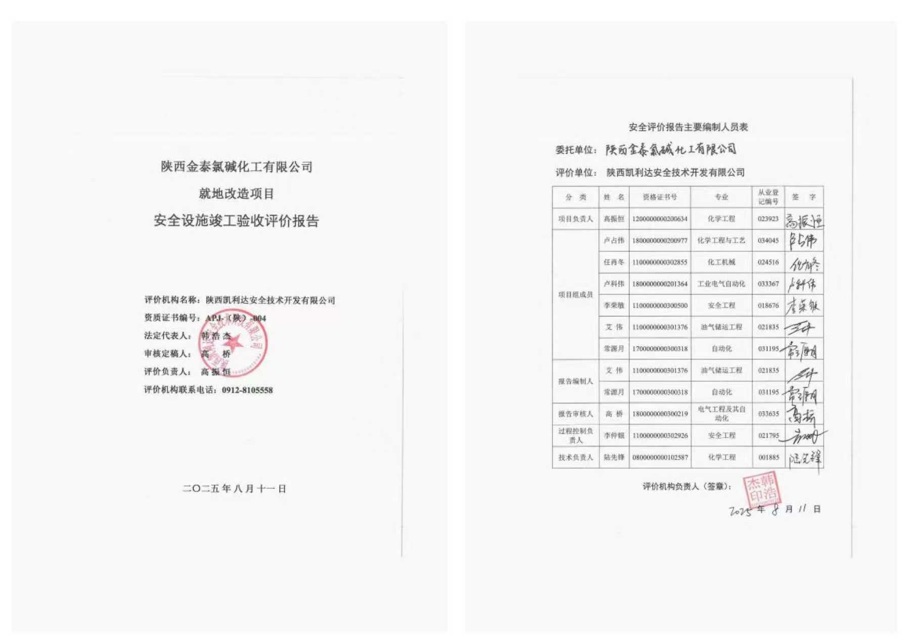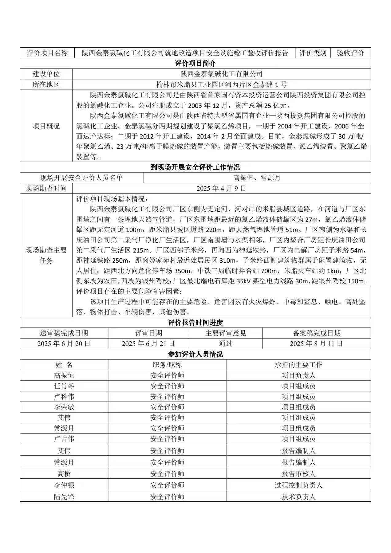陕西金泰氯碱化工有限公司就地改造项目安全设施竣工验收评价报告