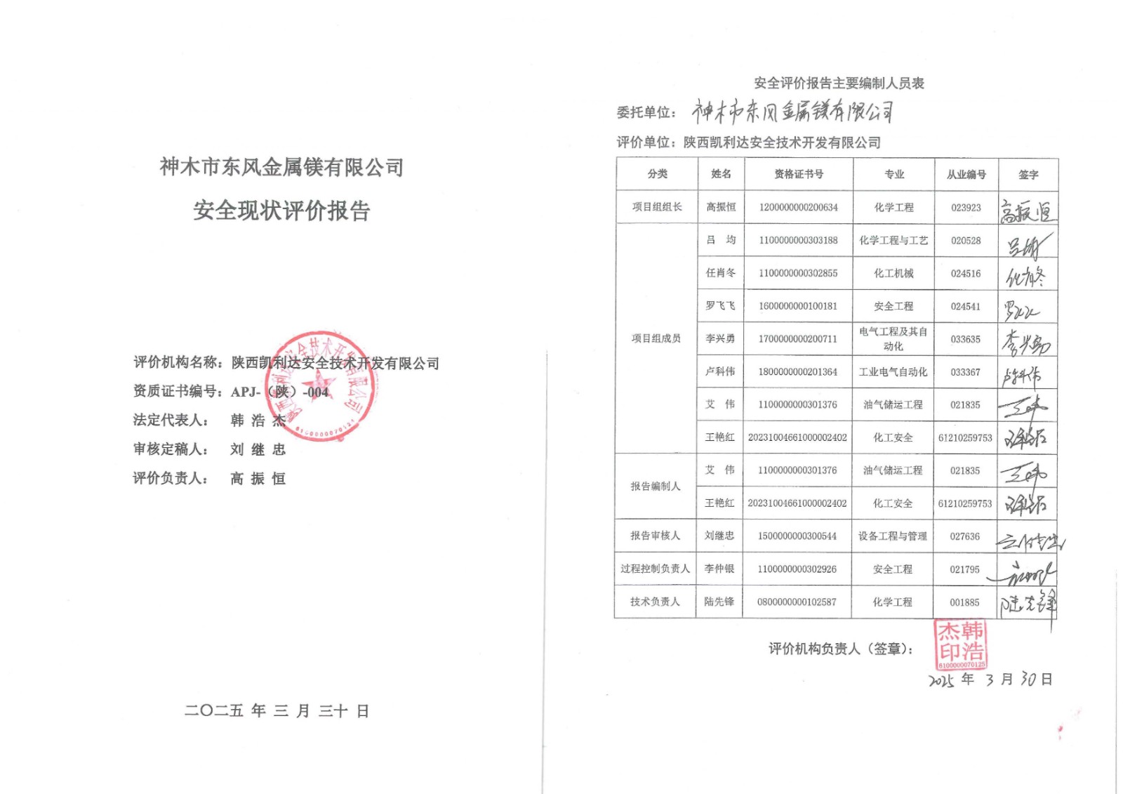KLDAP[2024]-3.22神木市东风金属镁有限公司安全现状评价