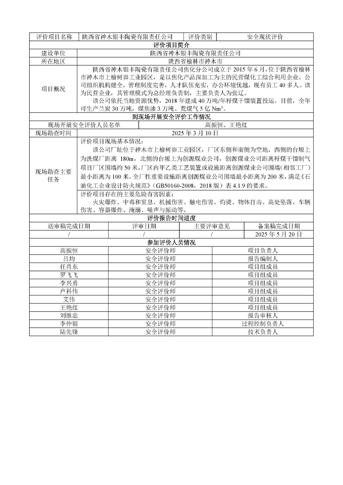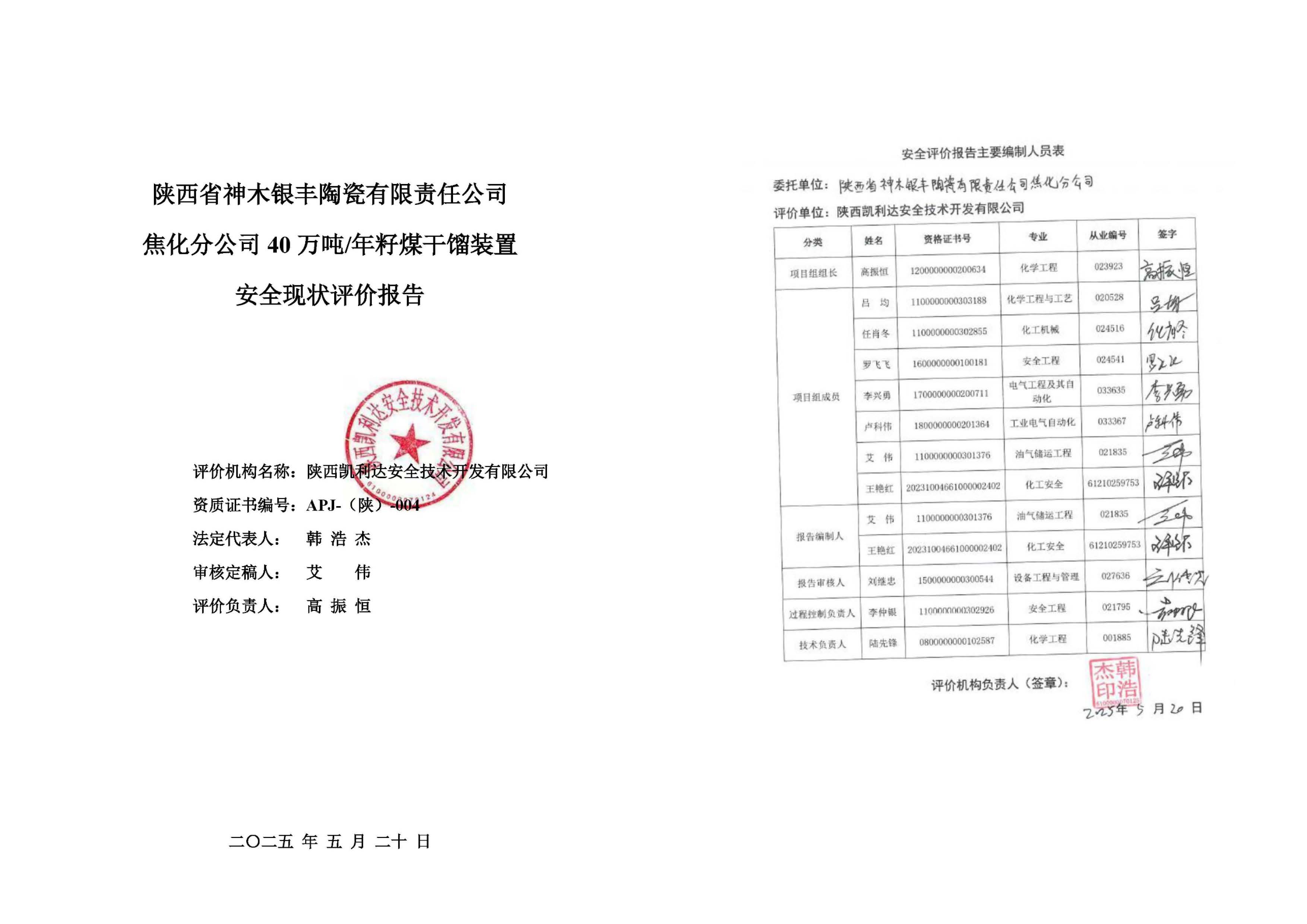 KLDAP[2025]-3.2陕西省神木银丰陶瓷有限责任公司安全现状评价