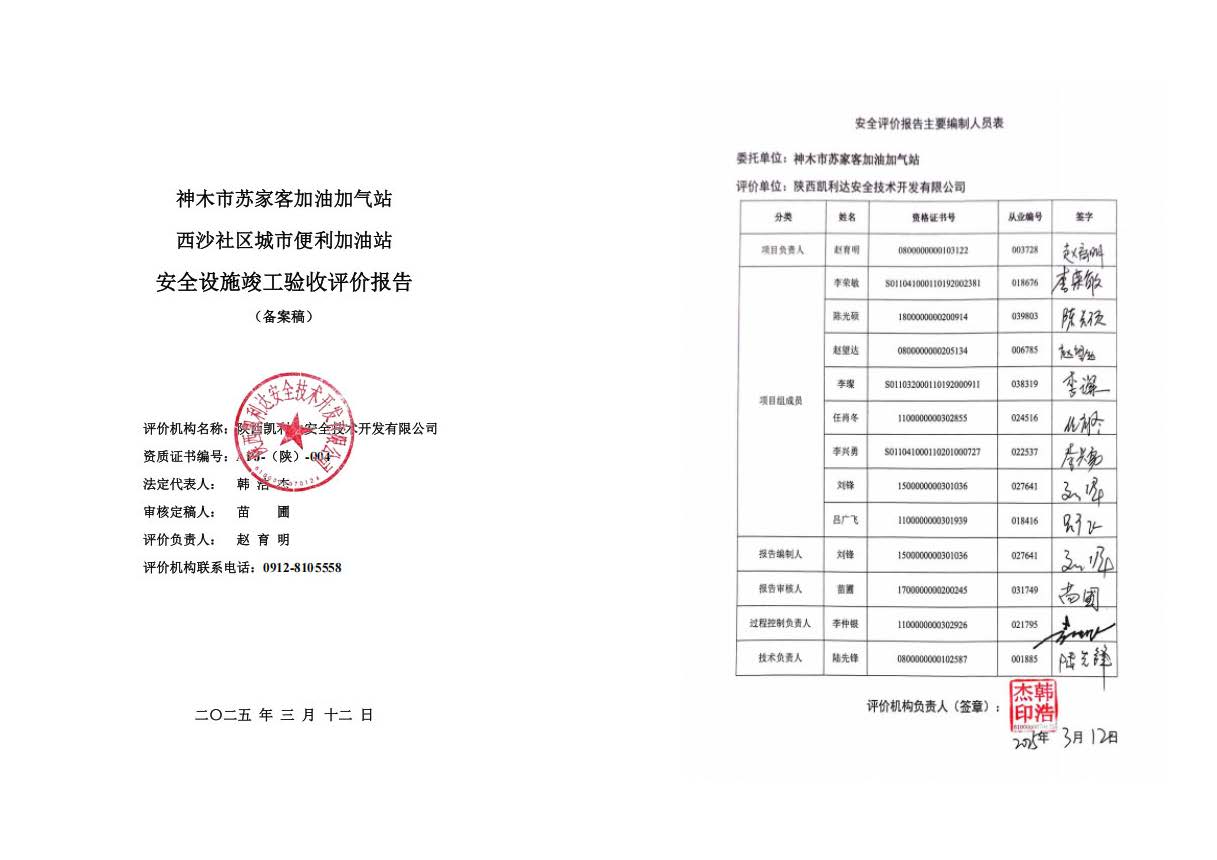 KLDAP[2024]-1.21神木市苏家客加油加气站西沙社区城市便利加油站安全设施竣工验收评价