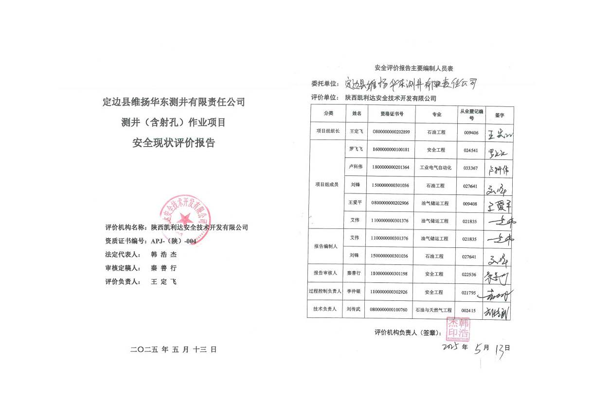 KLDAP[2025]-1.7定边县维扬华东测井有限责任公司测井(含射孔)作业项目安全现状评价