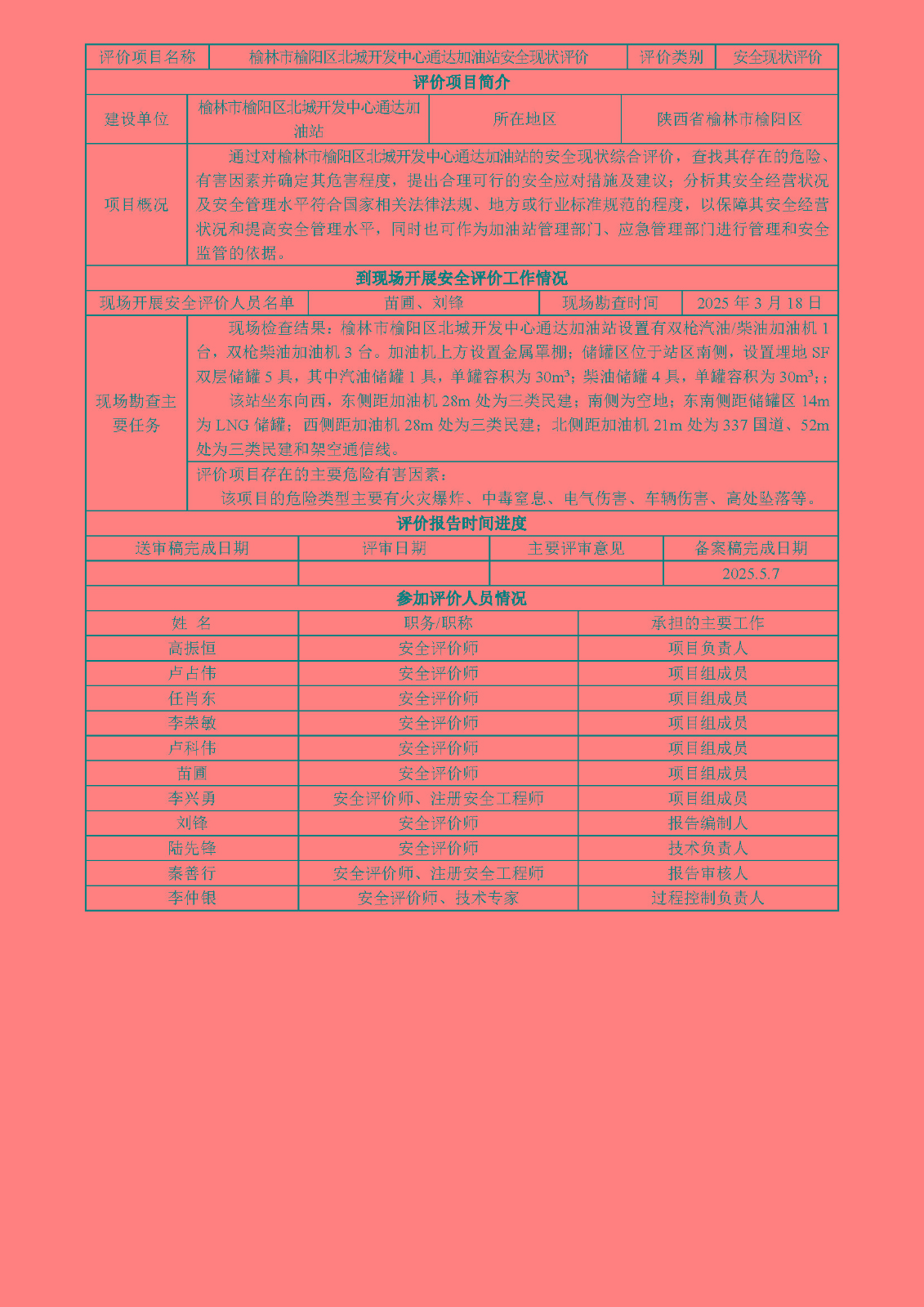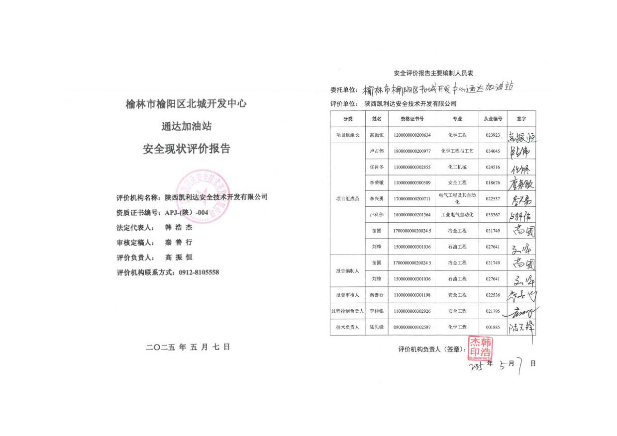 KLDAP[2025]-1.13榆林市榆阳区北城开发中心通达加油站安全现状评价