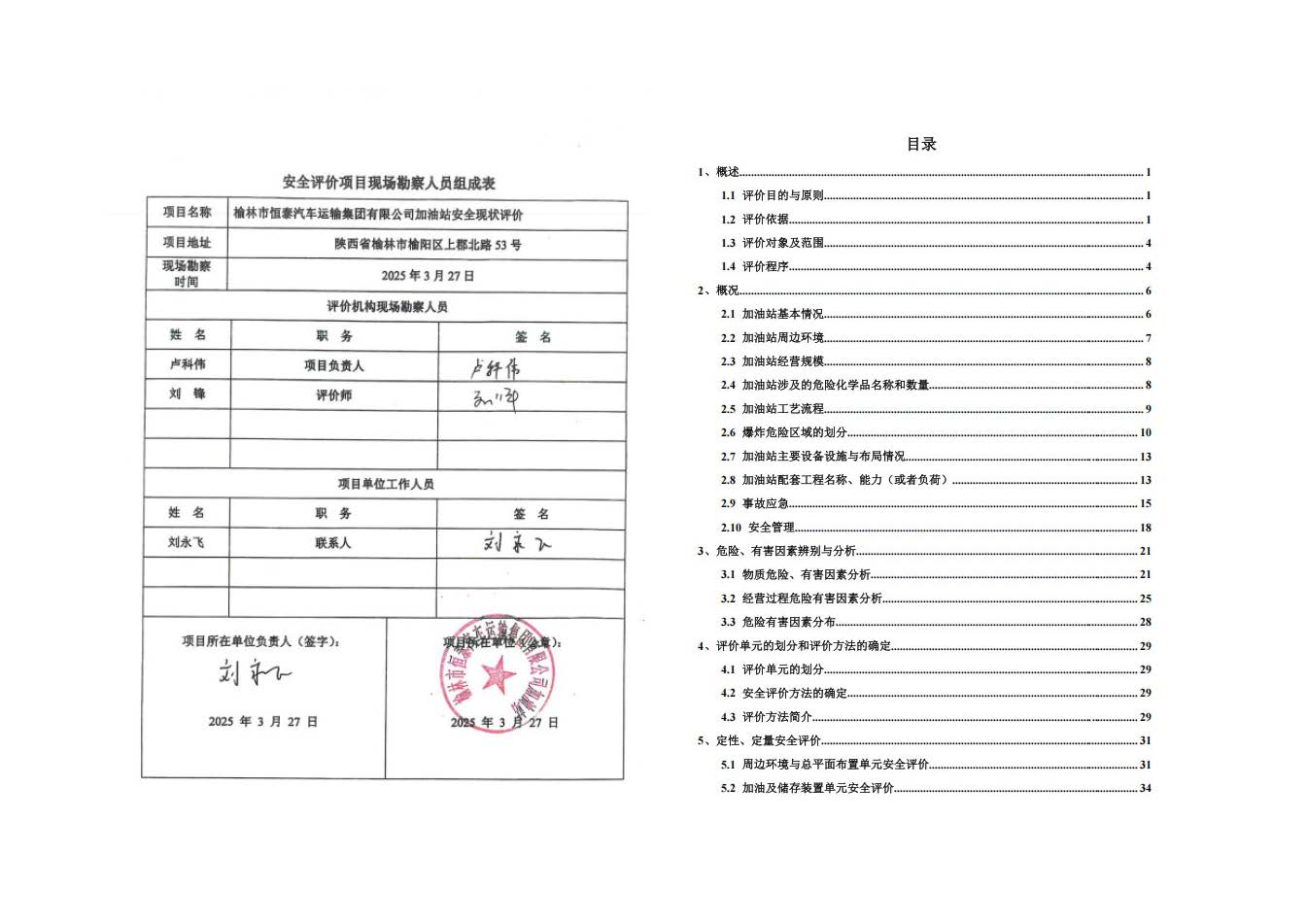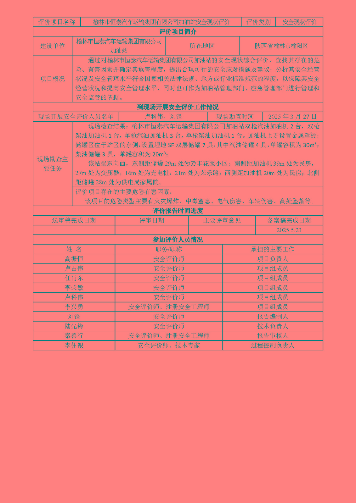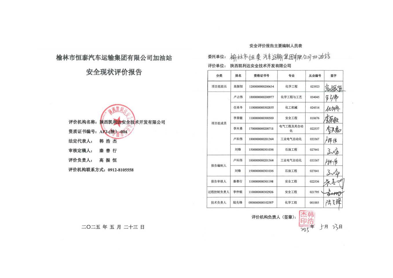 KLDAP[2025]-1.16榆林市恒泰汽车运输集团有限公司加油站安全现状评价