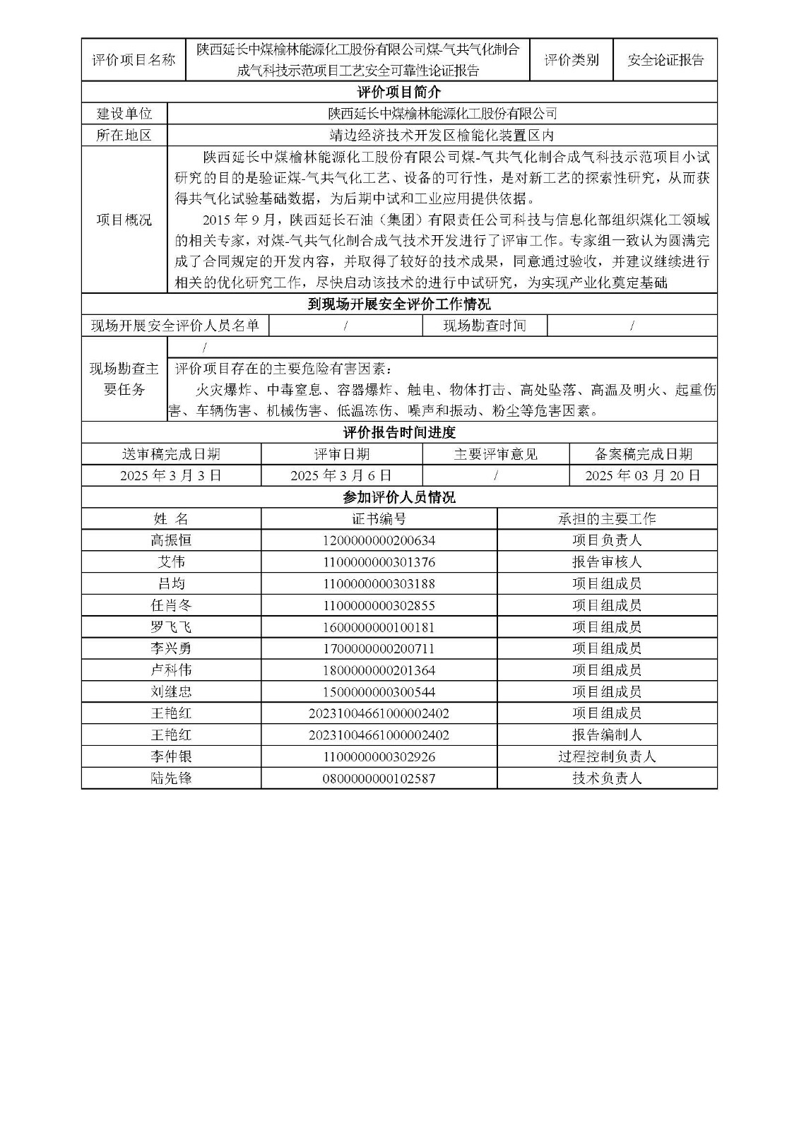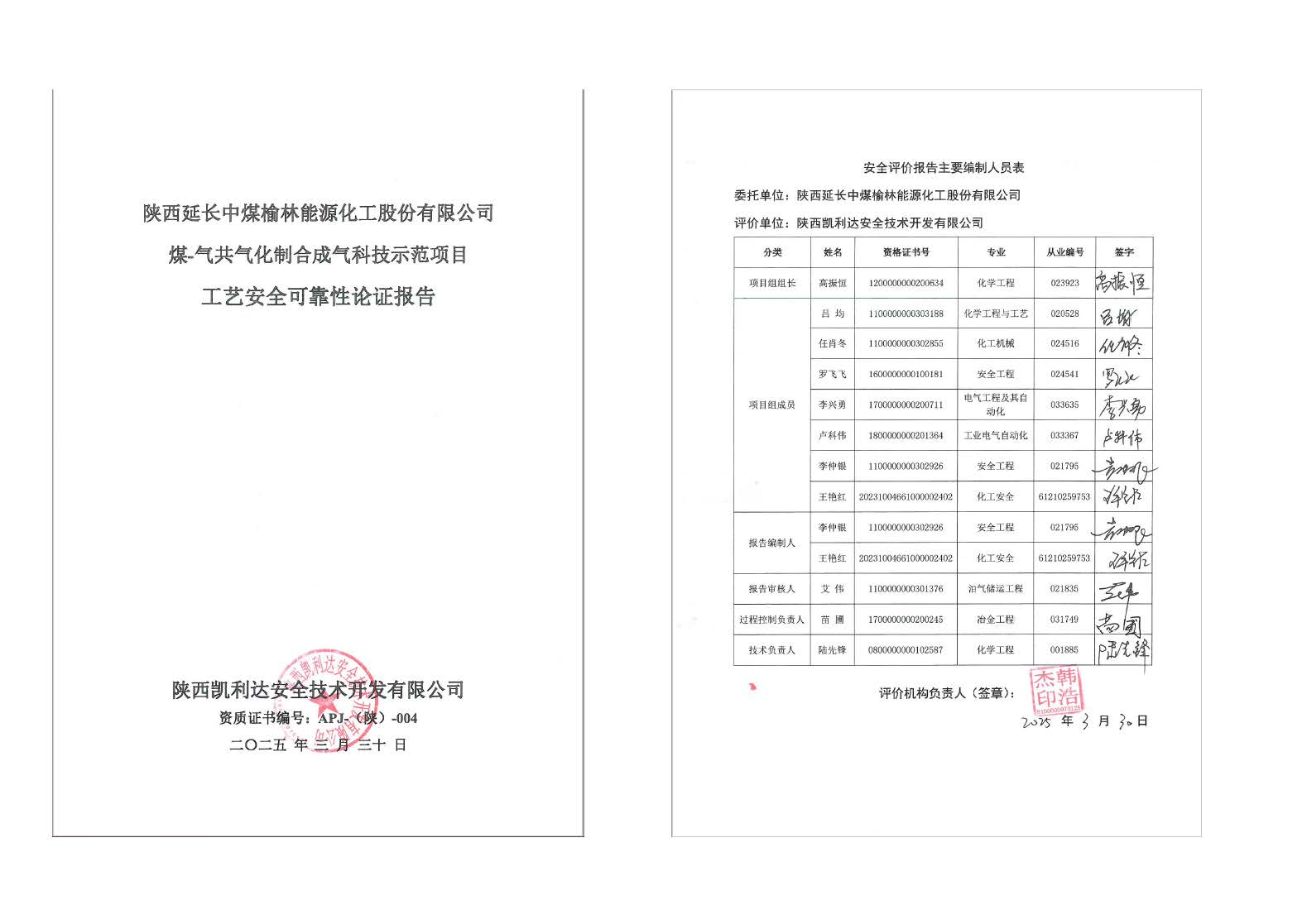 KLDAP[2024]-3.18陕西延长中煤榆林能源化工股份有限公司煤-气共气化制合成气科技示范项目工艺安全可靠性论证报告