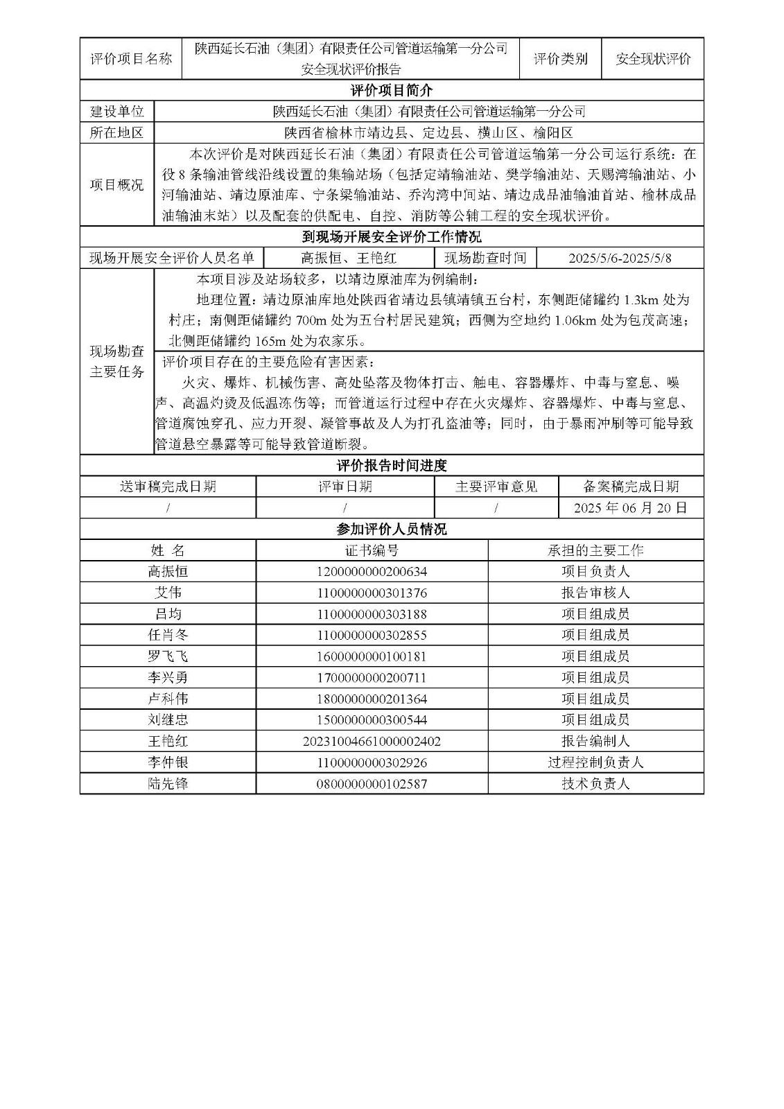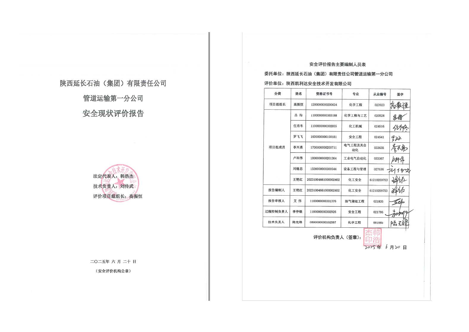 KLDAP[2025]-3.10陕西延长石油(集团)有限责任公司管道运输第一分公司安全现状评价报告