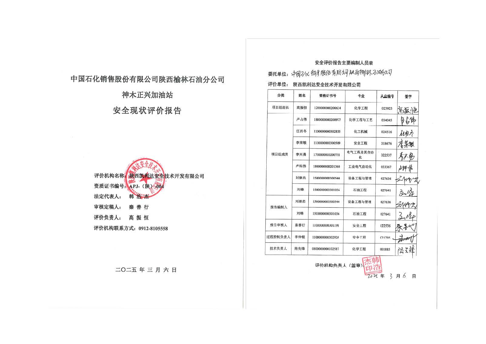 KLDAP[2023]-4.20中国石化销售股份有限公司陕西榆林石油分公司神木正兴加油站安全现状评价