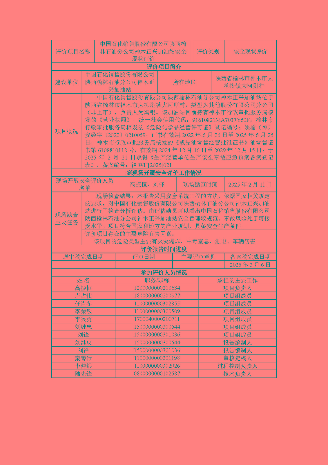 KLDAP[2023]-4.21中国石化销售股份有限公司陕西榆林石油分公司神木西葫芦素加油站安全现状评价