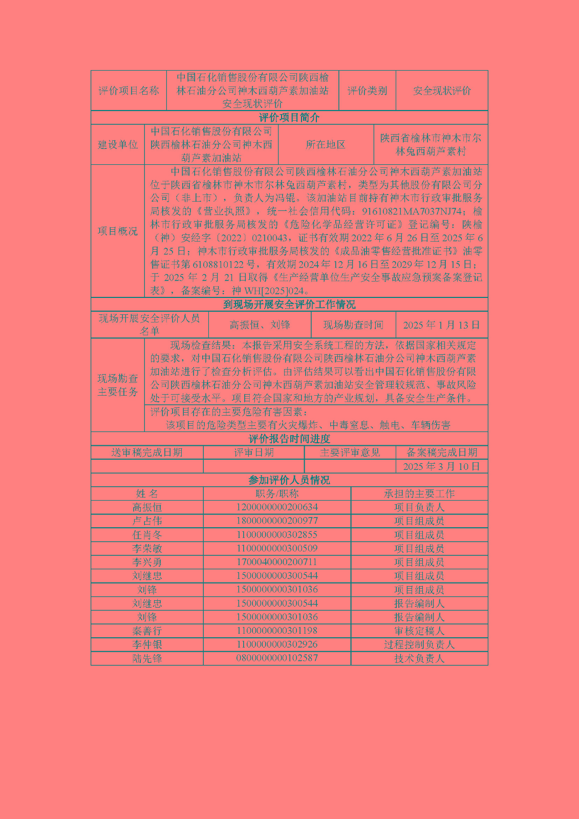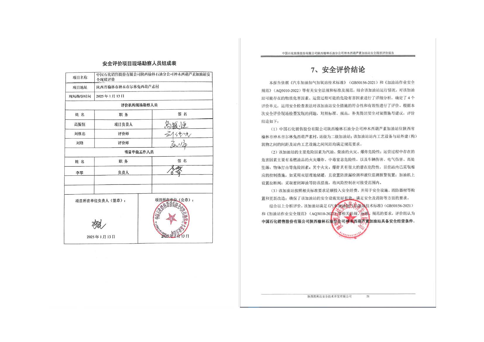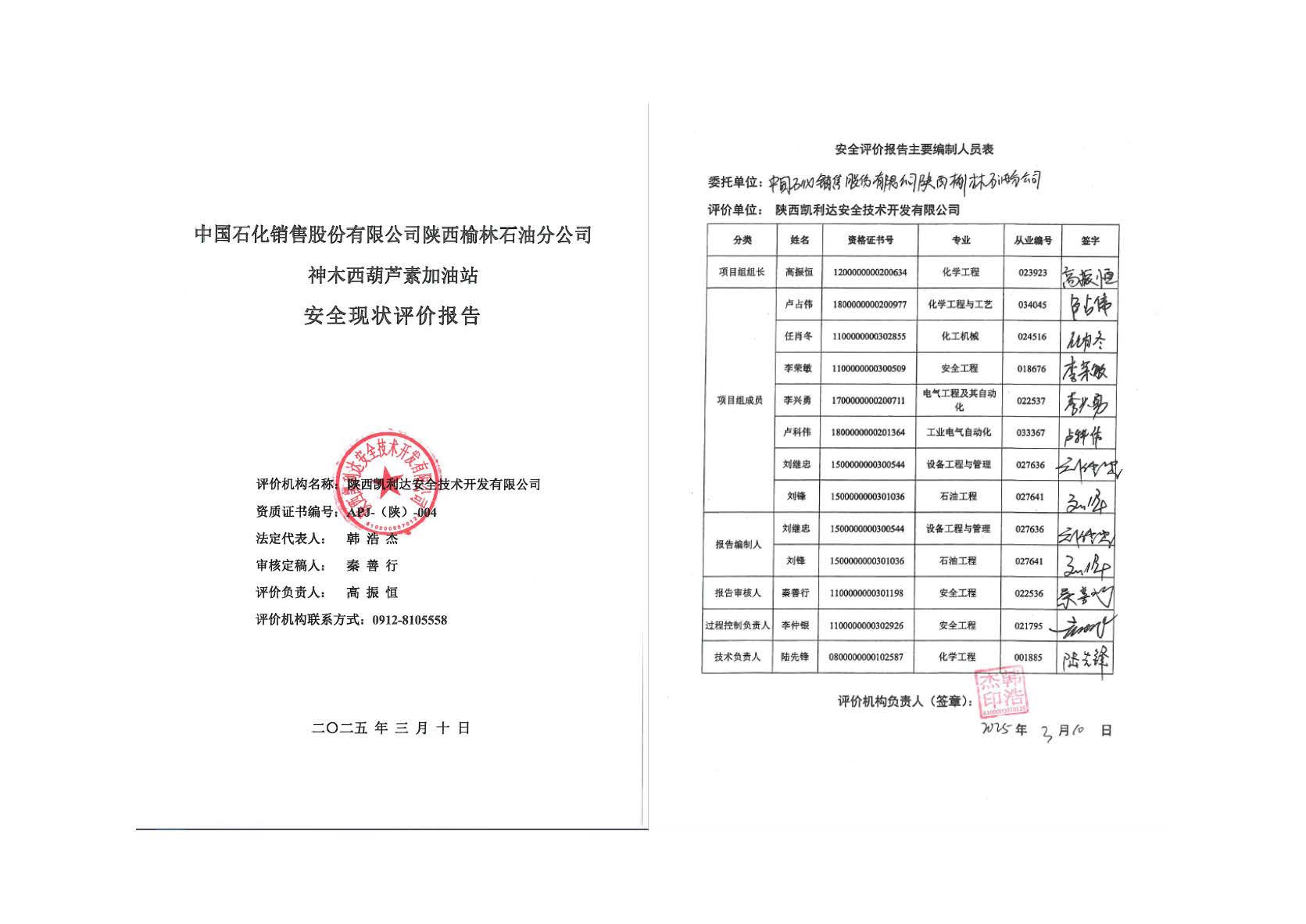 KLDAP[2023]-4.21中国石化销售股份有限公司陕西榆林石油分公司神木西葫芦素加油站安全现状评价