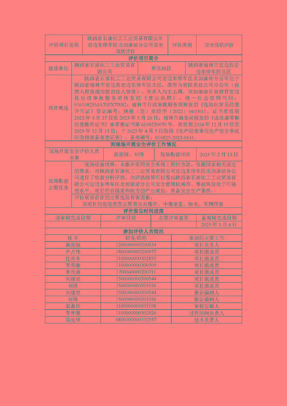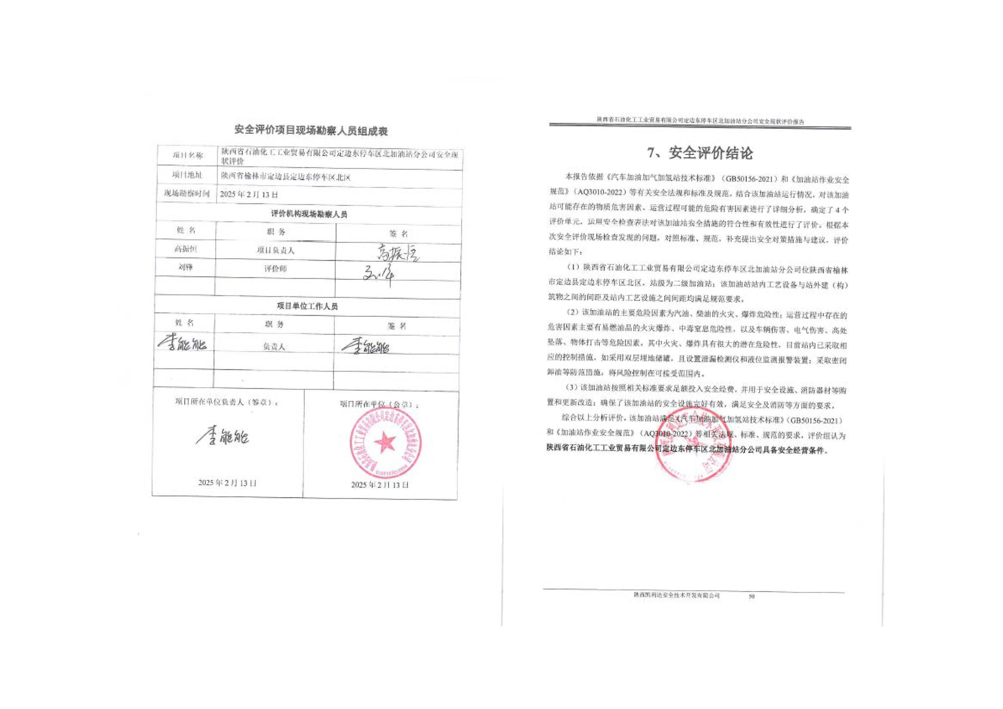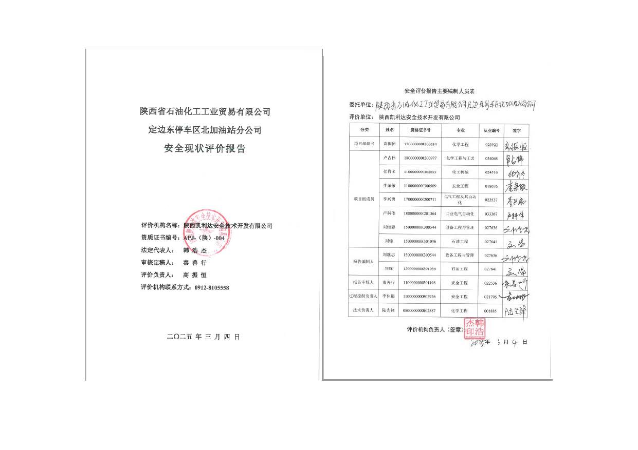 KLDAP[2025]-1.3陕西省石油化工工业贸易有限公司定边东停车区北加油站分公司安全现状评价安全现状评价