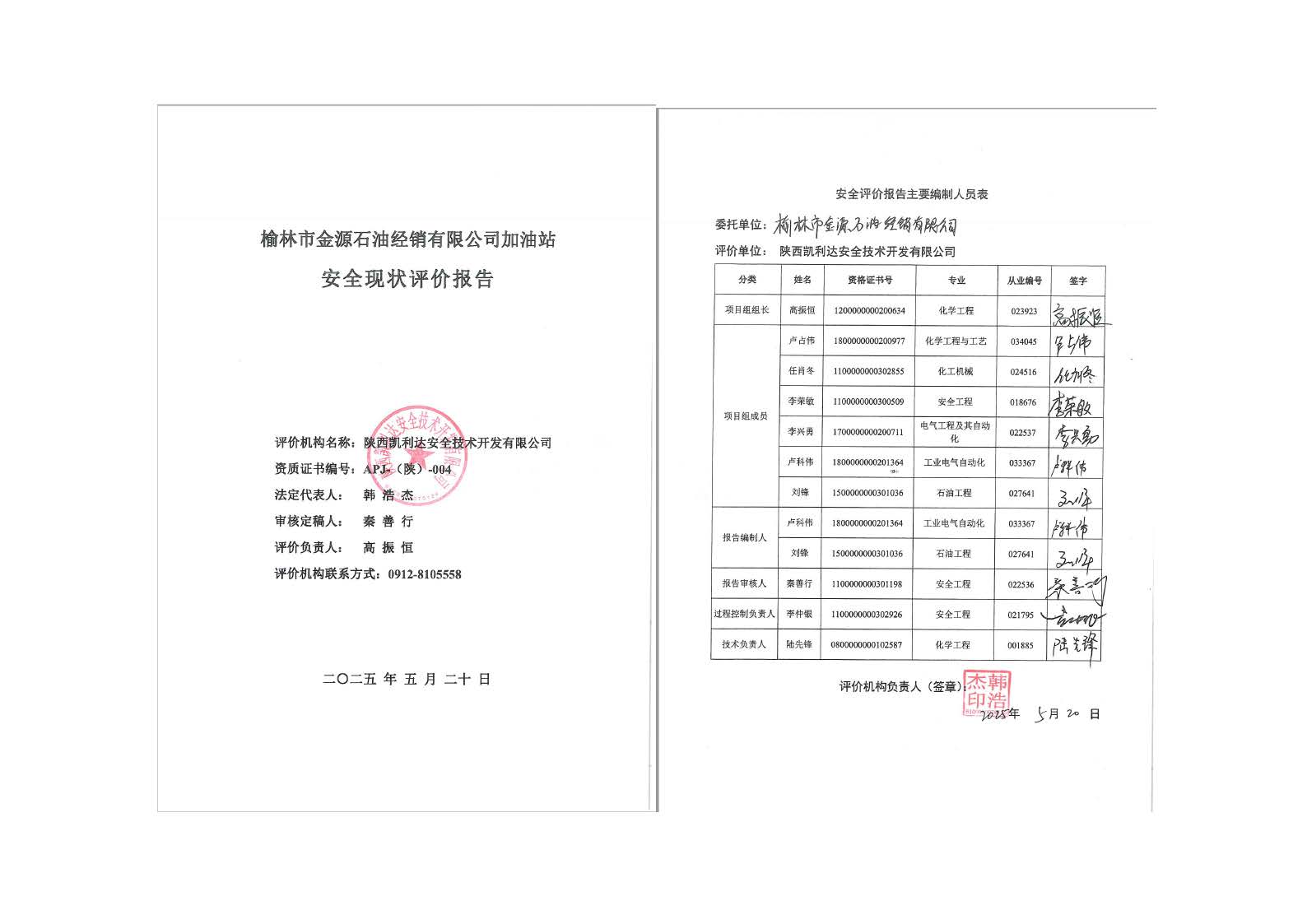 KLDAP[2025]-1.8榆林市金源石油经销有限公司加油站安全现状评价