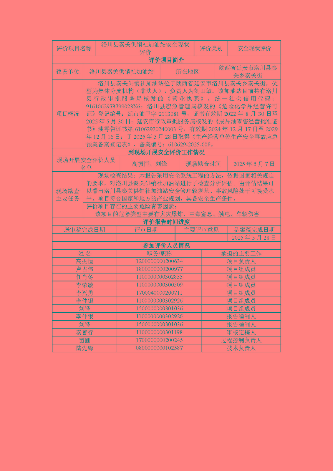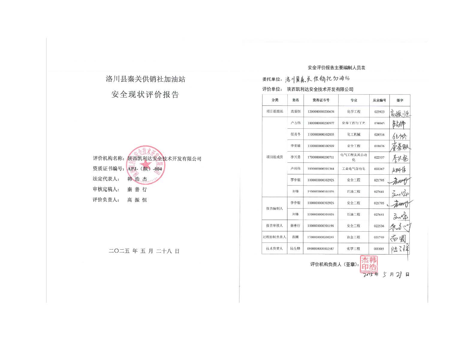 KLDAP[2025]-1.22洛川县秦关供销社加油站安全现状评价
