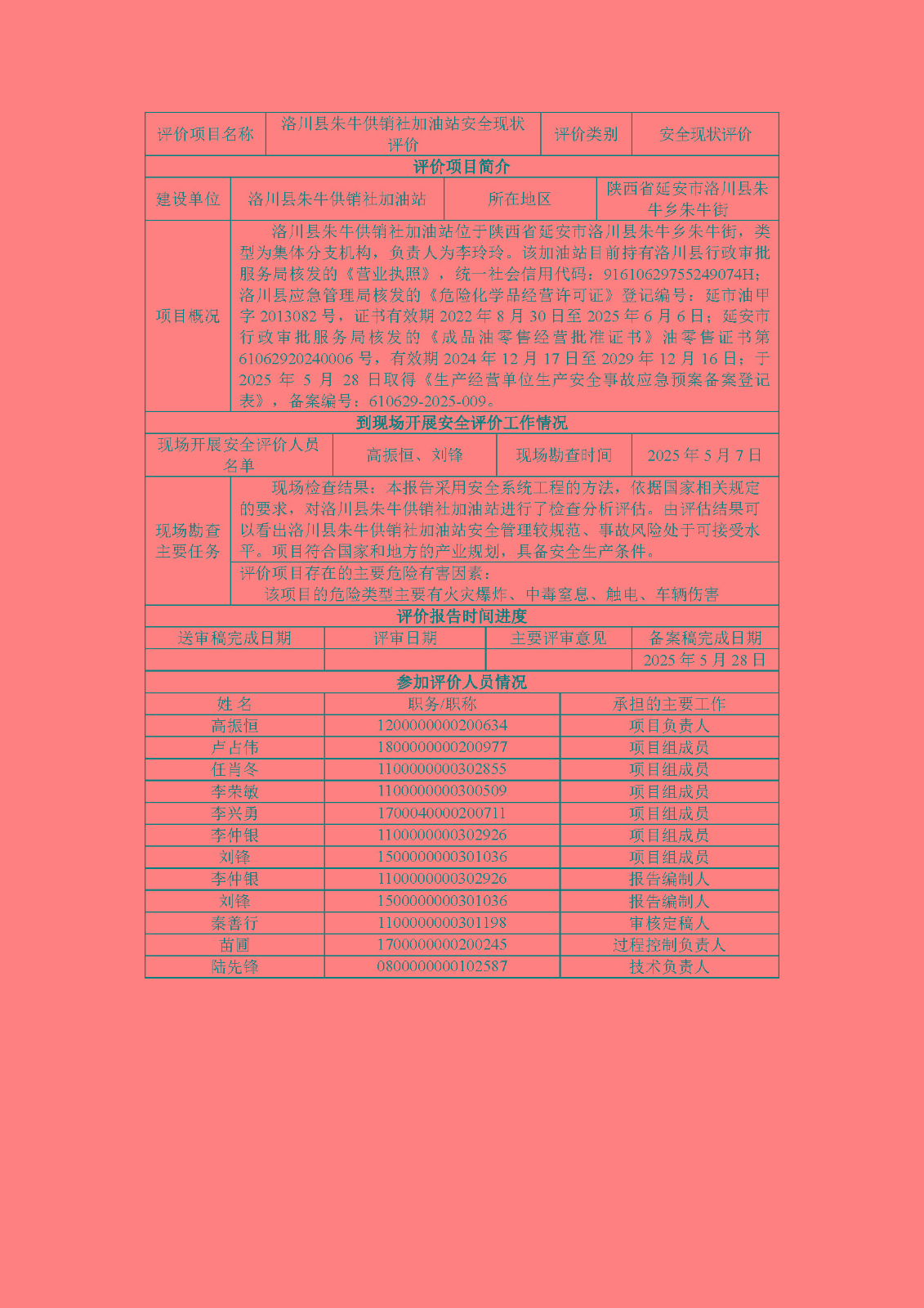 KLDAP[2025]-1.23洛川县朱牛供销社加油站安全现状评价