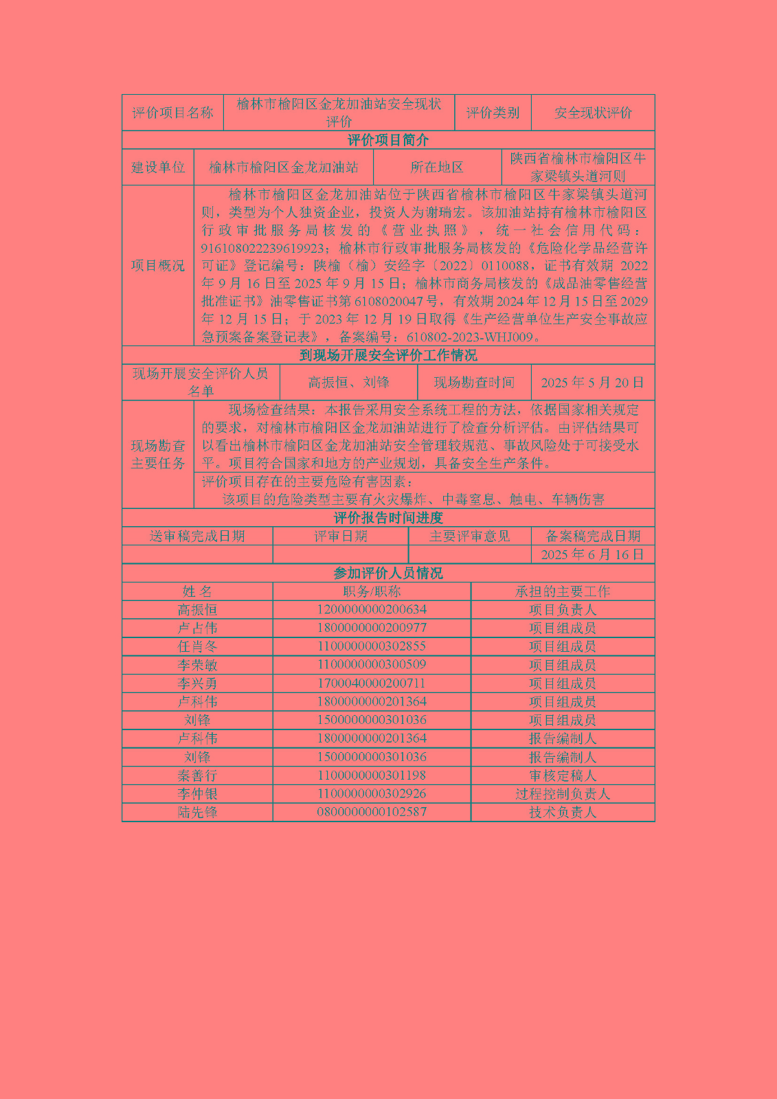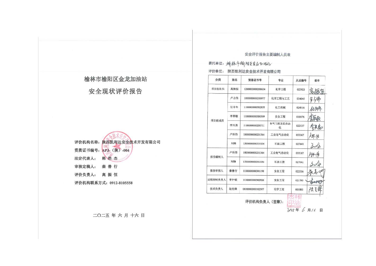KLDAP[2025]-1.25榆林市榆阳区金龙加油站安全现状评价