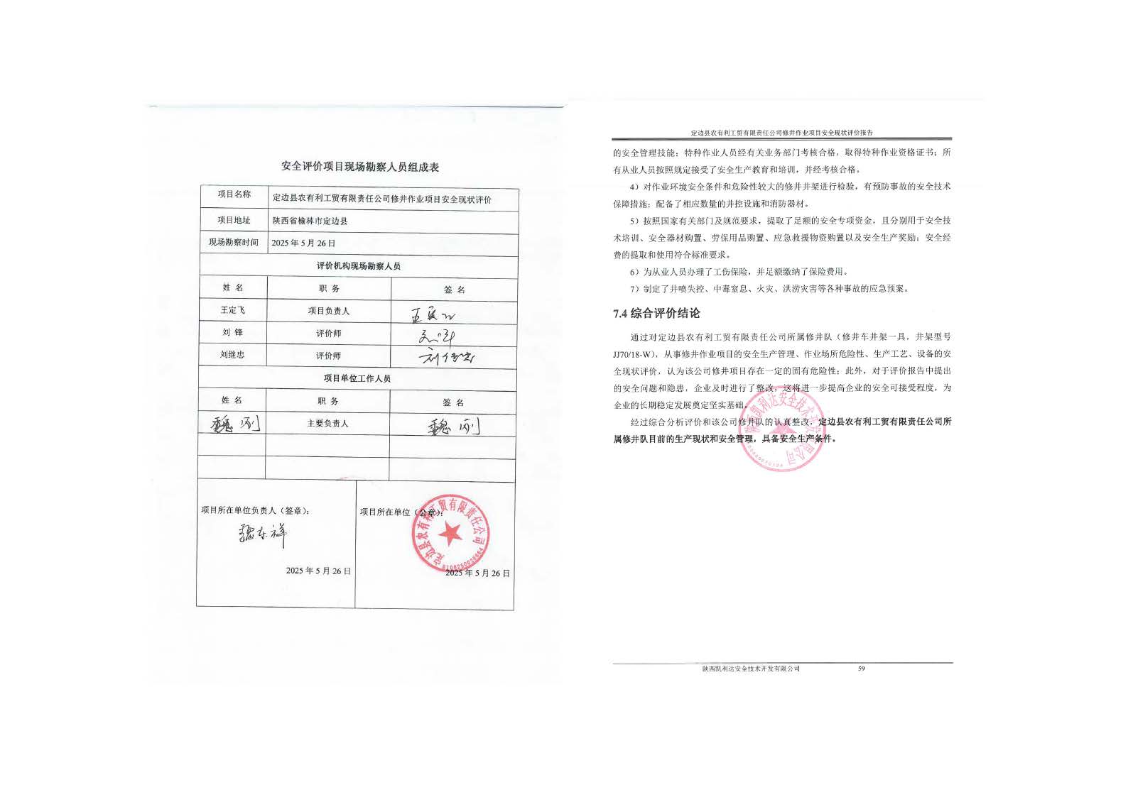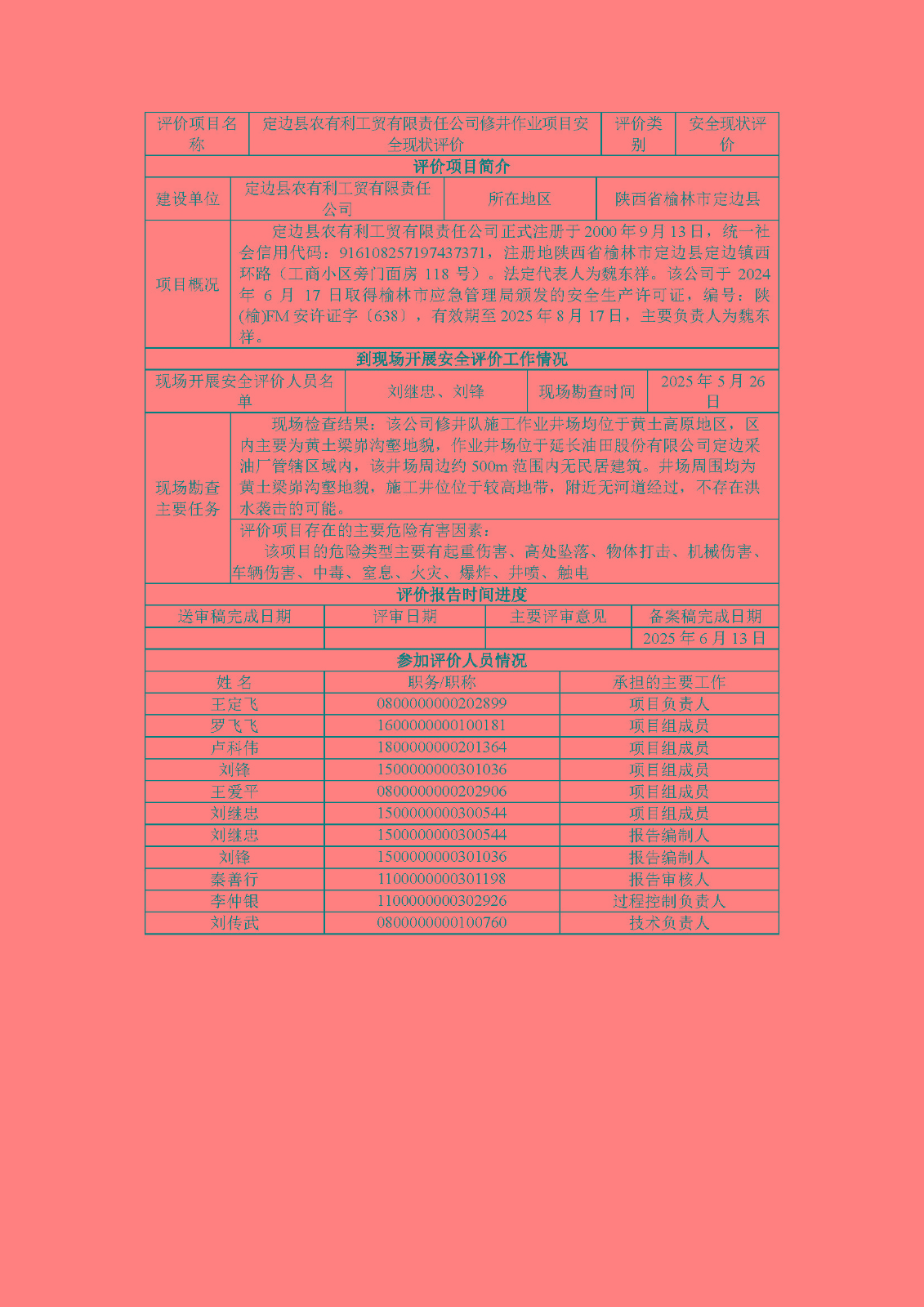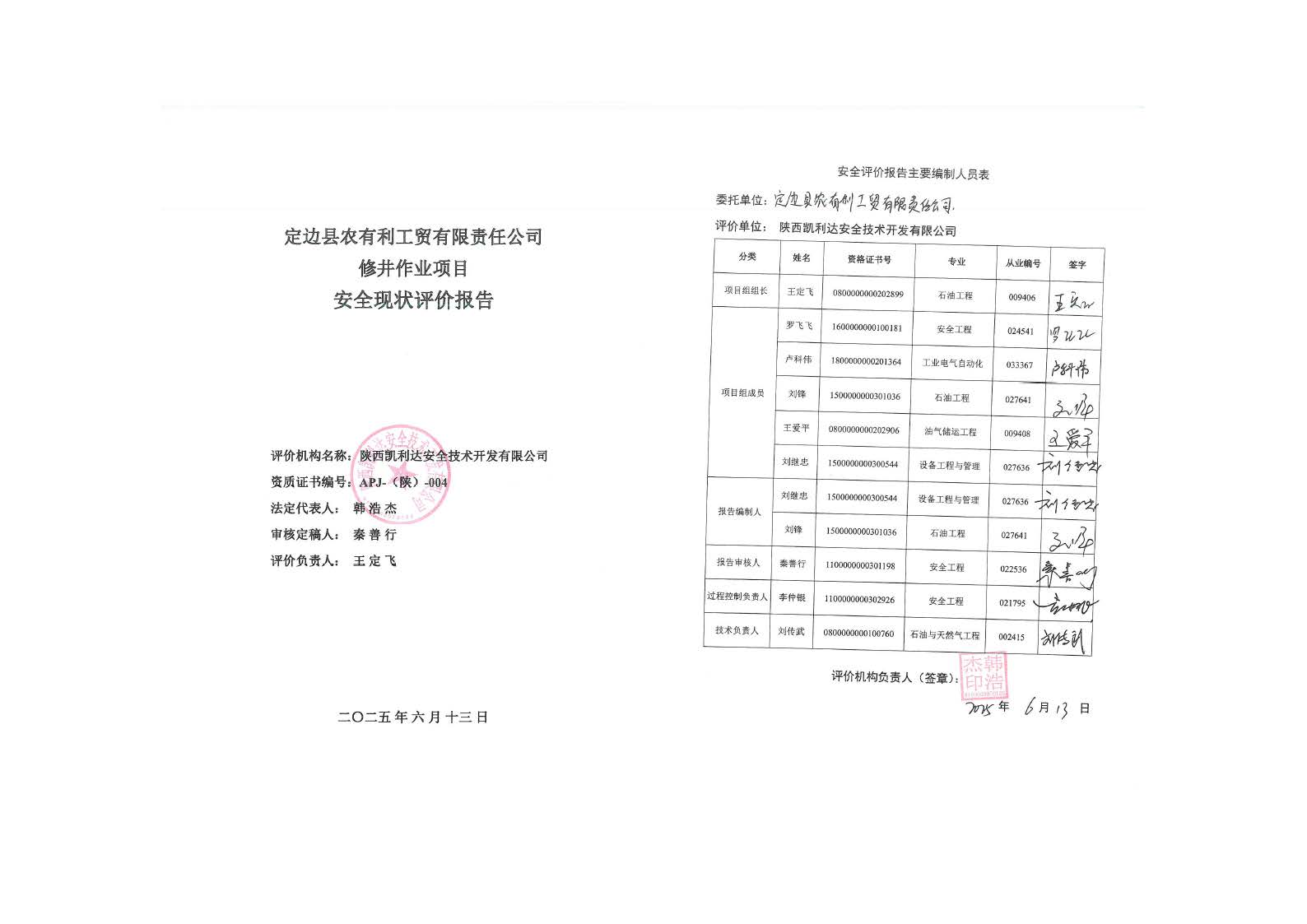 KLDAP[2025]-1.28定边县农有利工贸有限责任公司修井作业项目安全现状评价