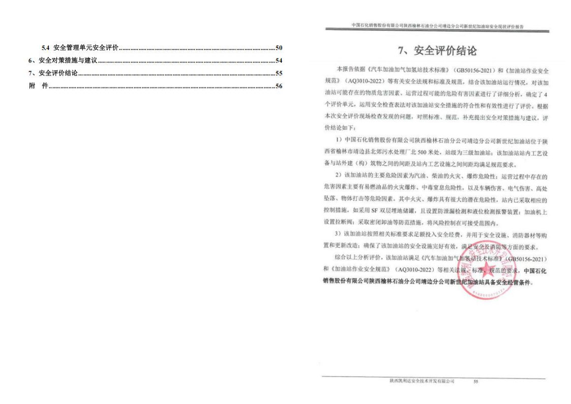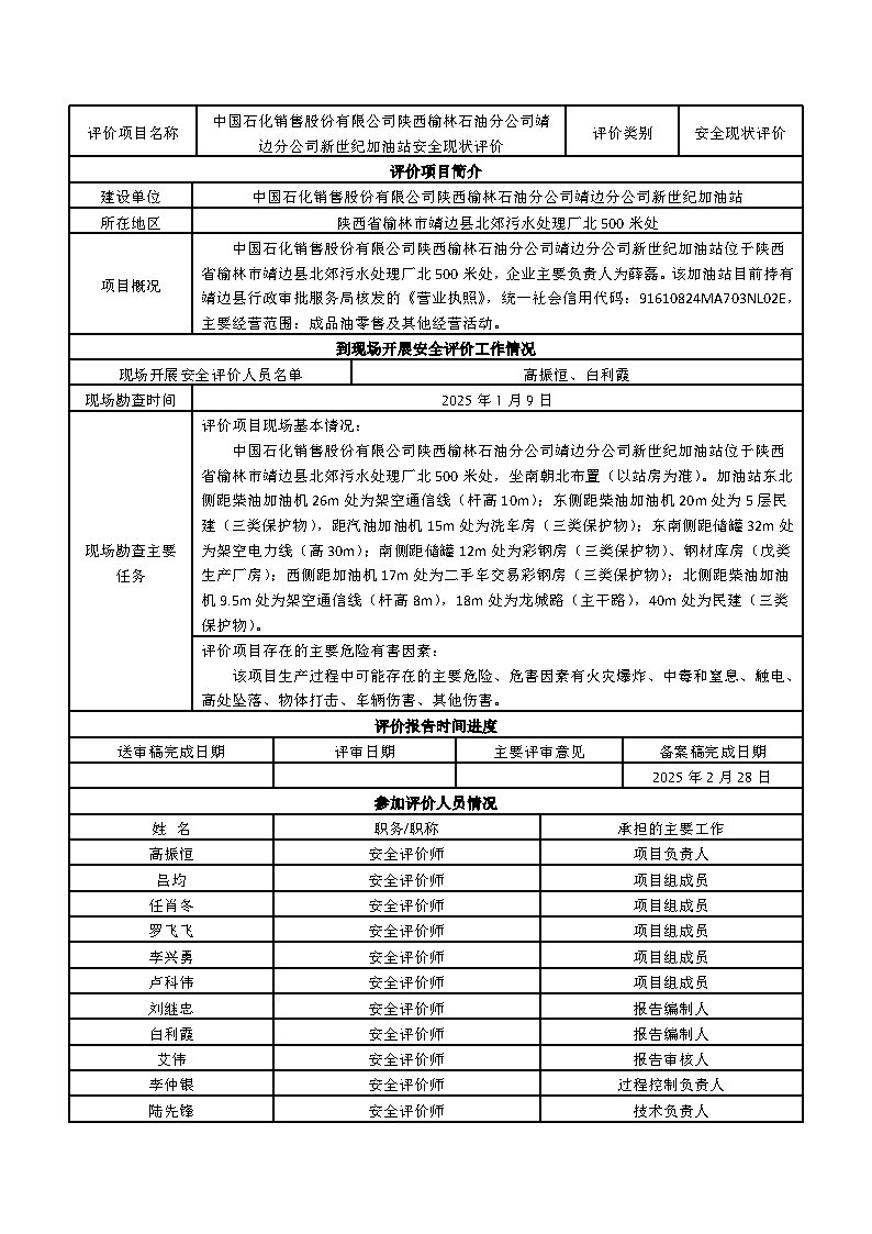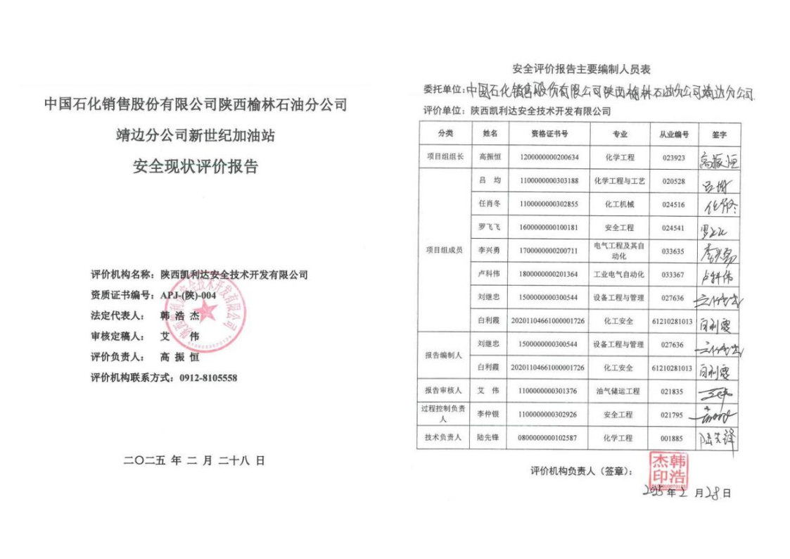 中国石化销售股份有限公司陕西榆林石油分公司靖边分公司新世纪加油站安全现状评价报告