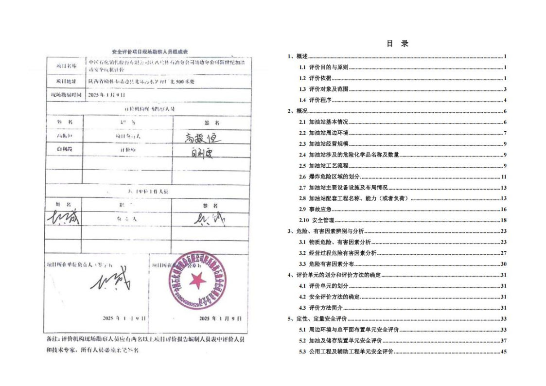 中国石化销售股份有限公司陕西榆林石油分公司靖边分公司杨桥畔加油站安全现状评价报告