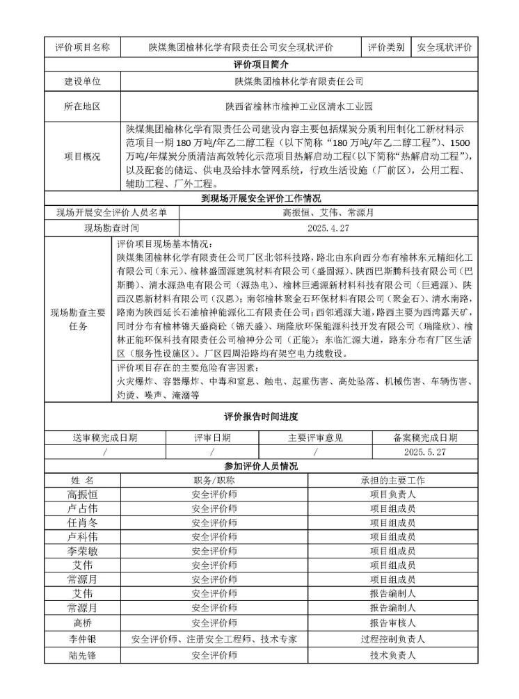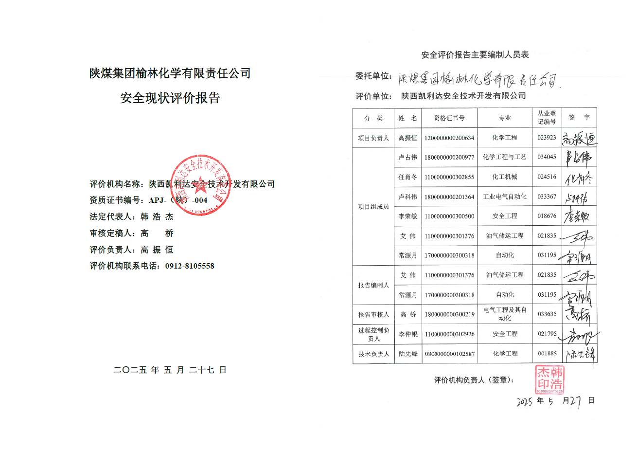 KLDAP[2025]-2.12-陕煤集团榆林化学有限责任公司安全现状评价
