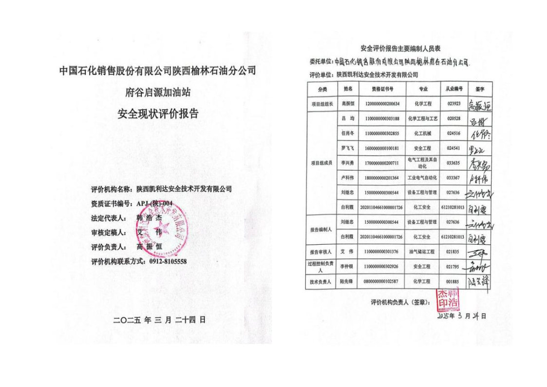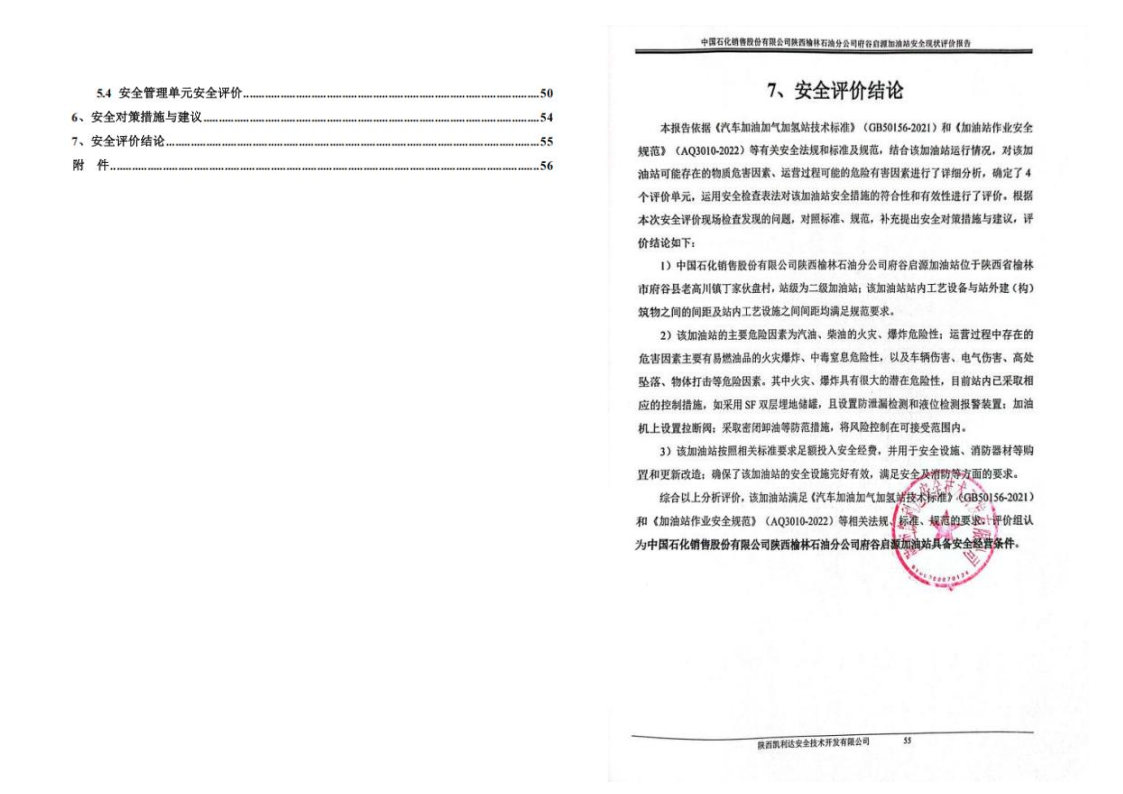 中国石化销售股份有限公司陕西榆林石油分公司府谷启源加油站安全现状评价报告