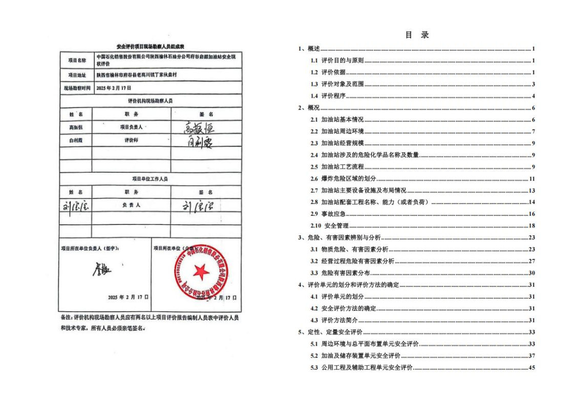 中国石化销售股份有限公司陕西榆林石油分公司府谷太恒加油加气站(加油部分)安全现状评价报告
