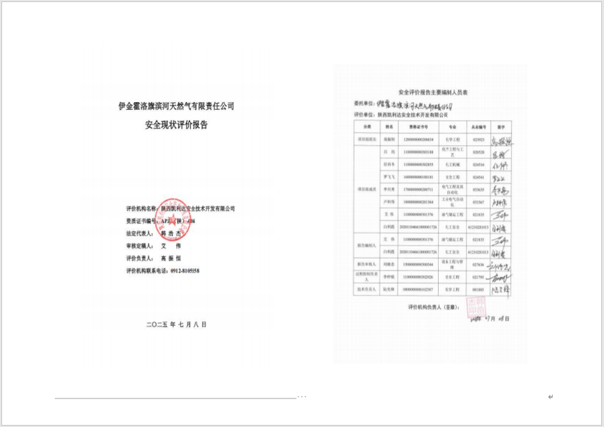 KLDAP[2025]-3.15伊金霍洛旗滨河天然气有限责任公司安全现状评价