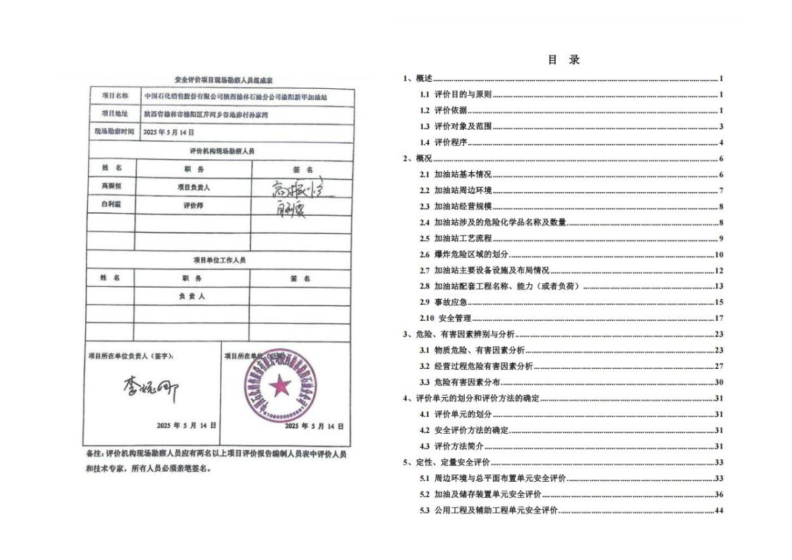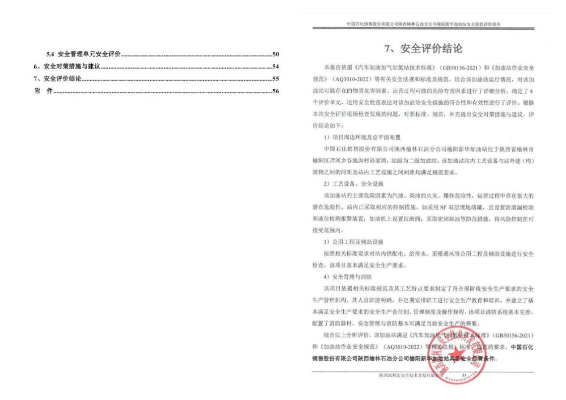 中国石化销售股份有限公司陕西榆林石油分公司榆阳拓新加油站安全现状评价报告