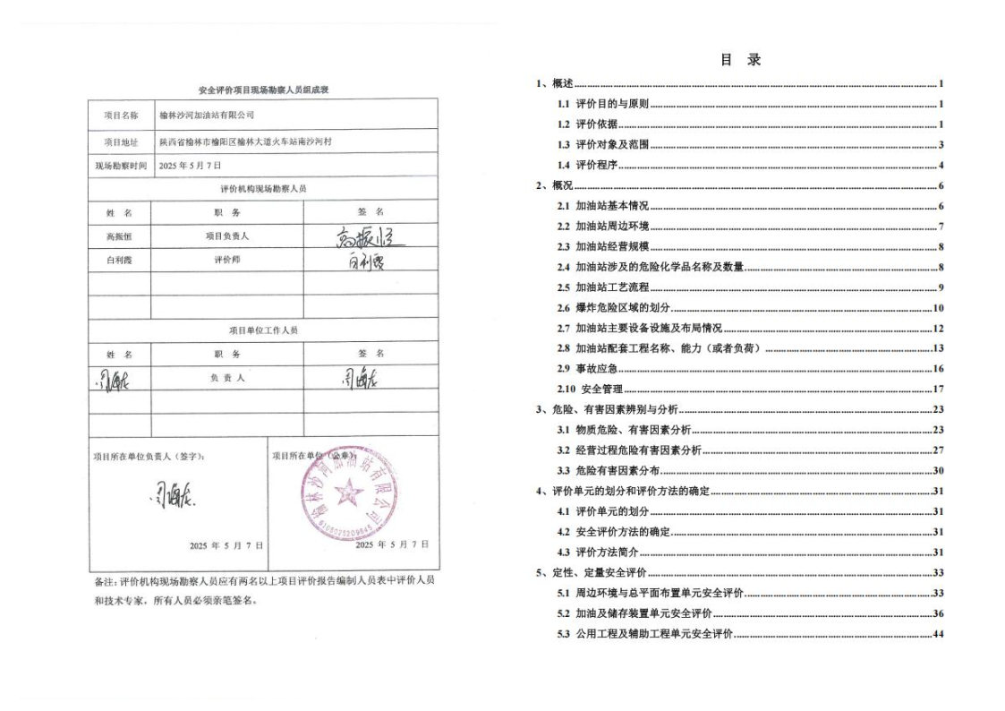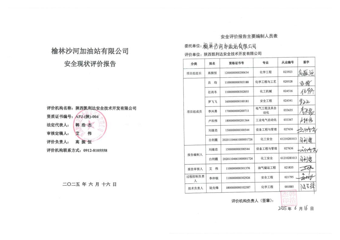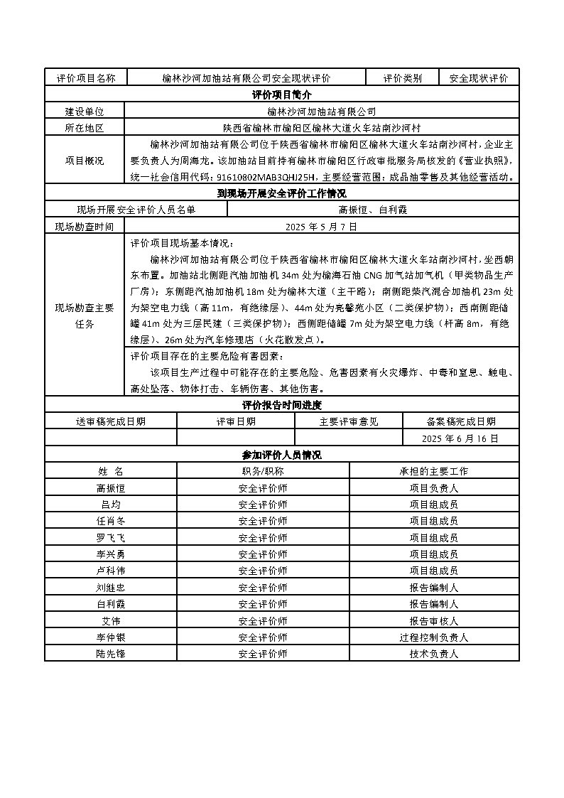 榆林市榆阳区鱼河米家园则便民加油站安全现状评价报告
