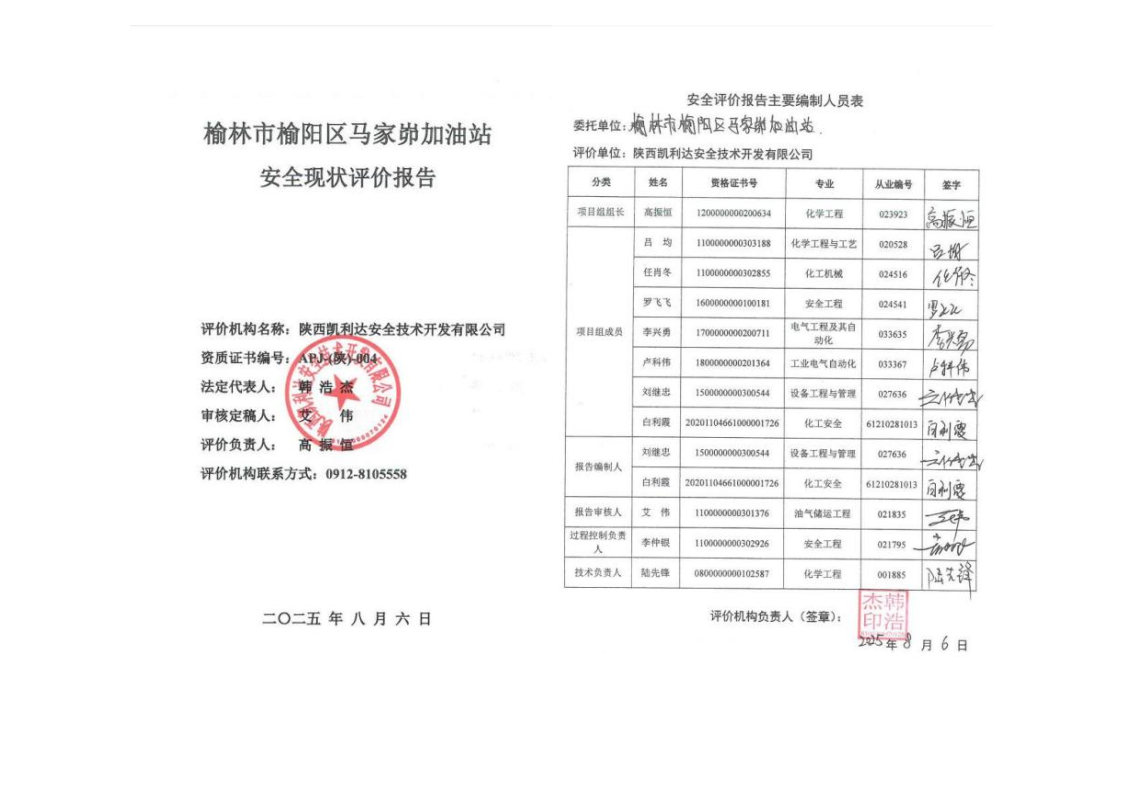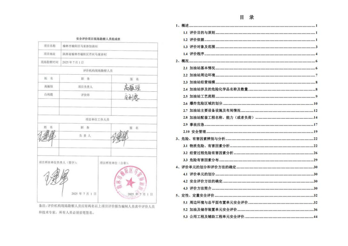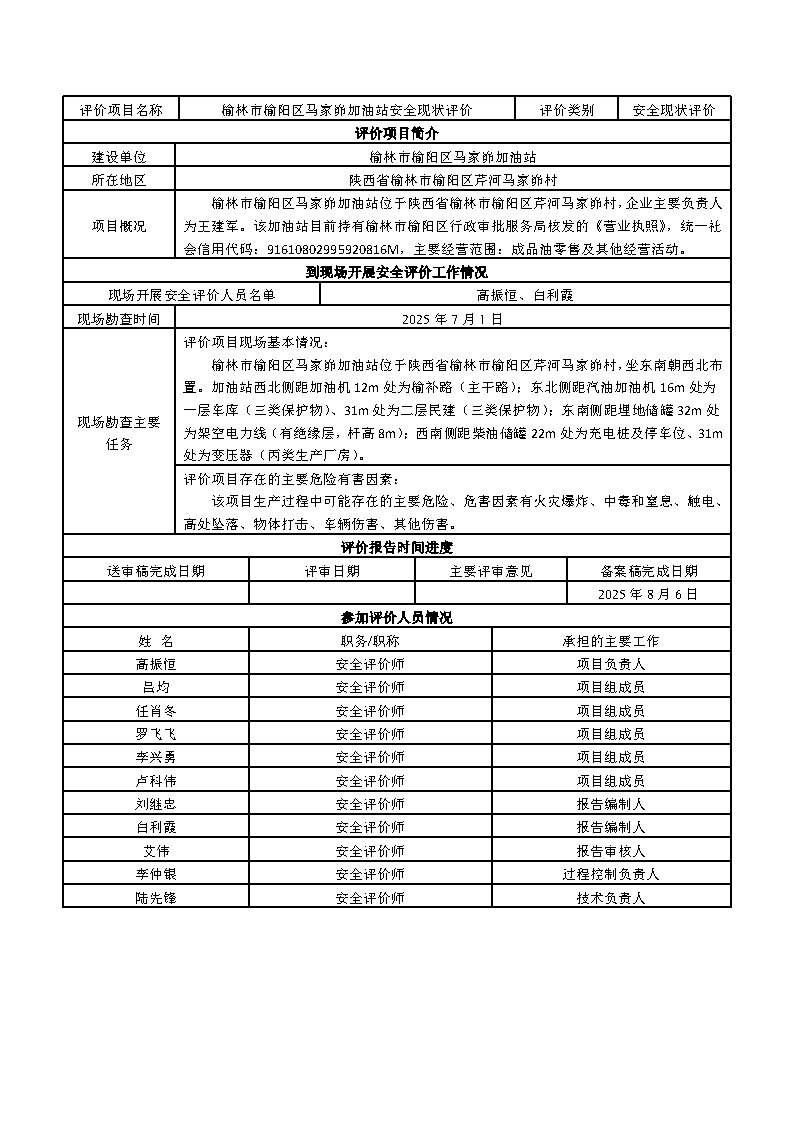 榆林市榆阳区马家峁加油站安全现状评价报告
