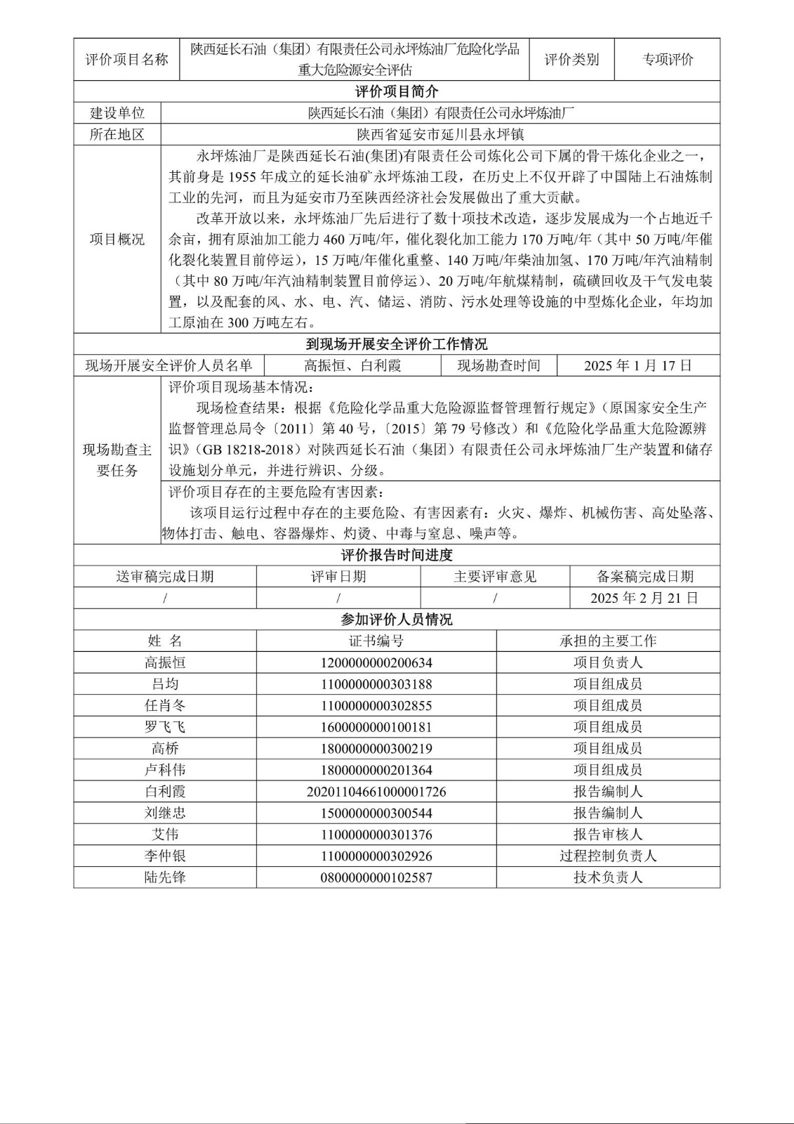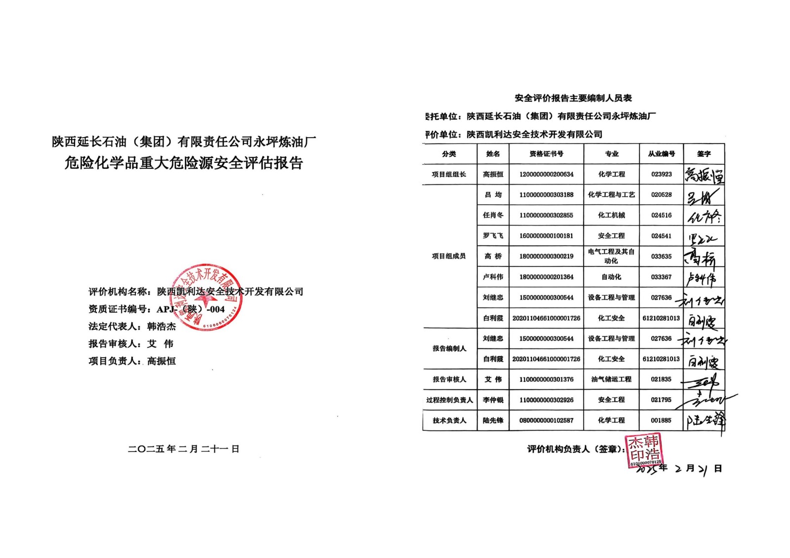 KLDAP[2024]-3.20--陕西延长石油(集团)有限责任公司延安永坪炼油厂危险化学品重大危险源安全评估报告